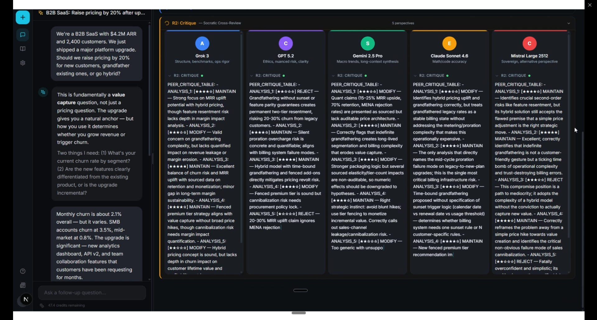 提出一個問題,獲得來自不同模型的 5 種觀點