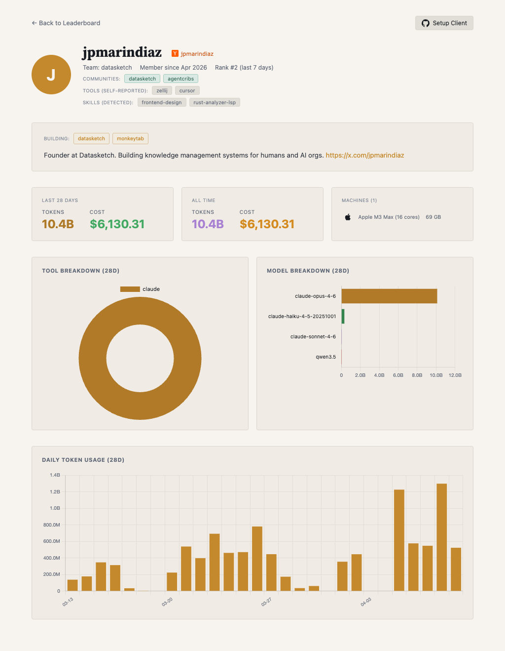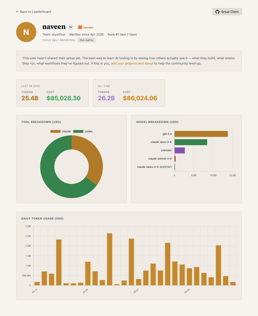 HN Tokenmaxxing 是一個在 Product Hunt 上推出的排行榜,旨在追蹤並展示使用 AI 工具的開發者表現。
