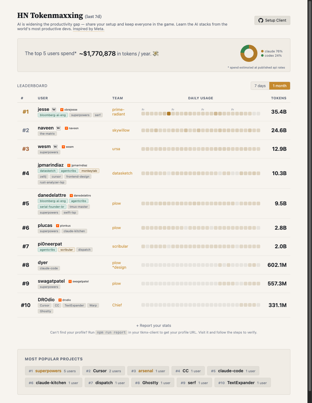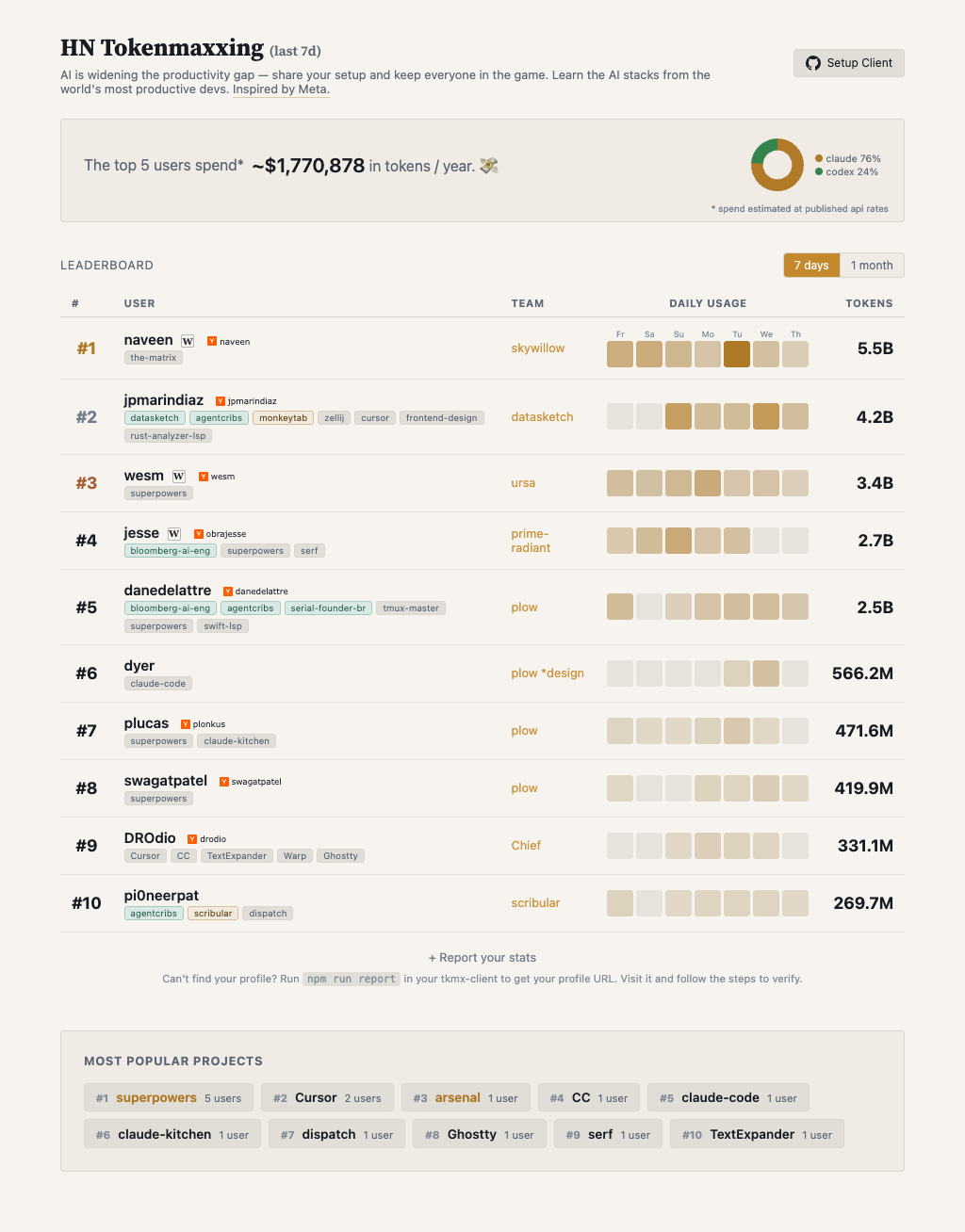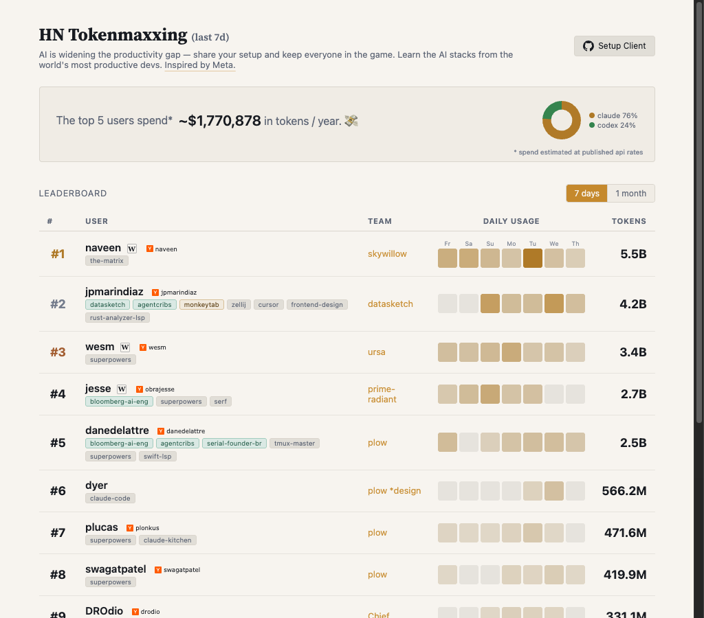 HN Tokenmaxxing:AI 驅動開發者的排行榜