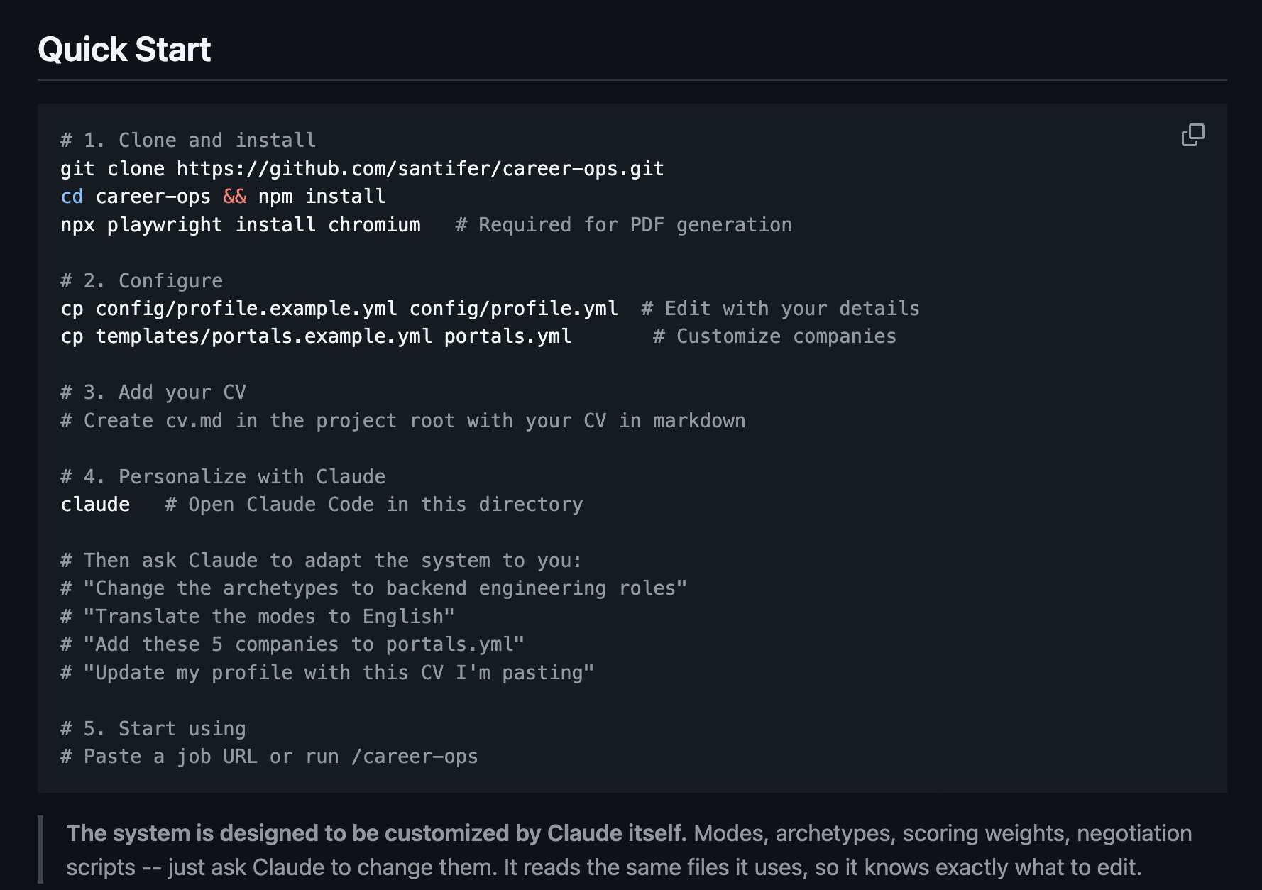 Career-Ops 是一個基於 Claude Code 構建的 AI 驅動求職系統,旨在透過人工智慧自動化與優化求職流程。