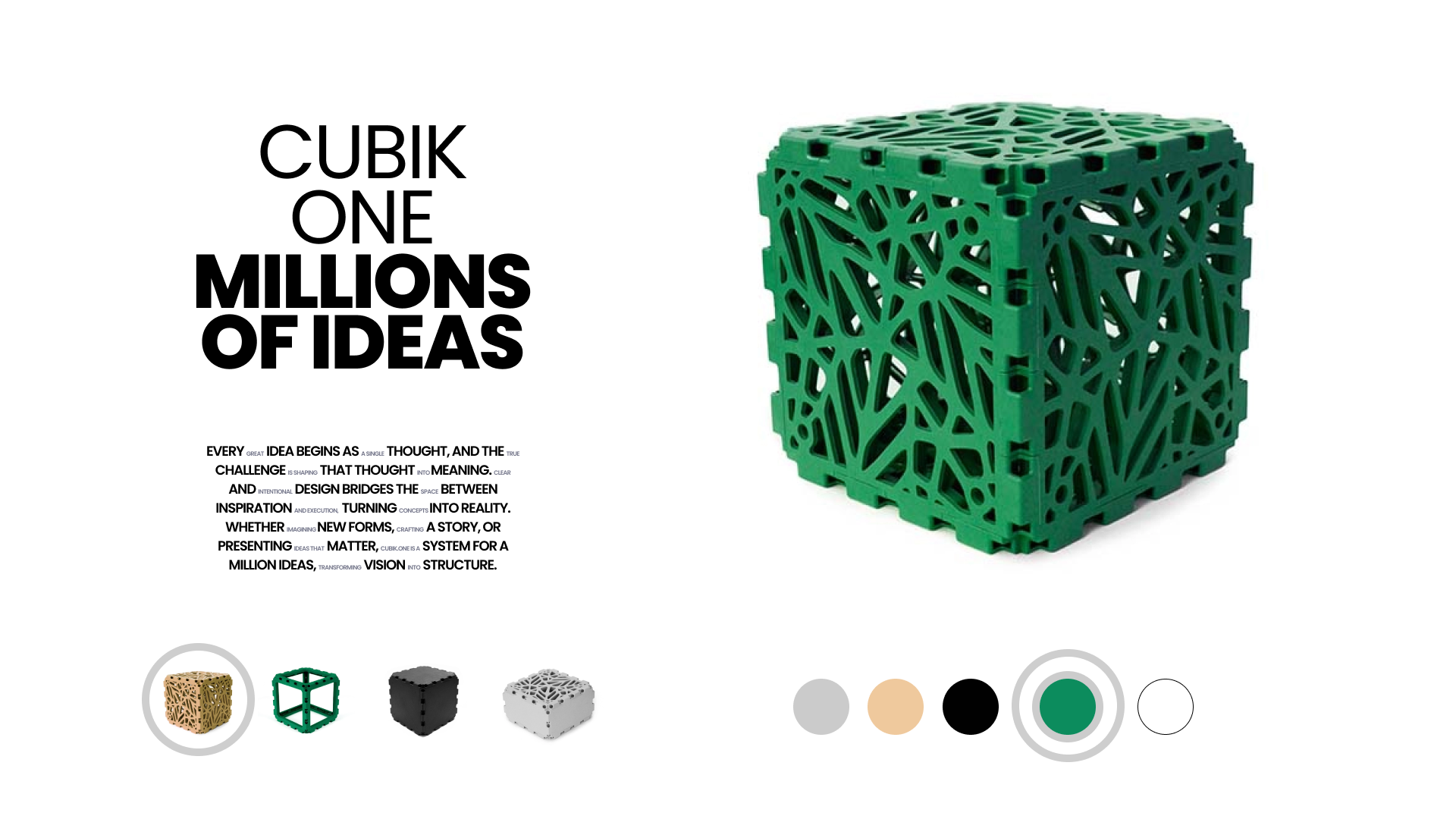 Cubik.one 是一款模組化的 3D 方塊系統,讓使用者無需任何工具即可在現實生活中打造出各種實體結構與家具。