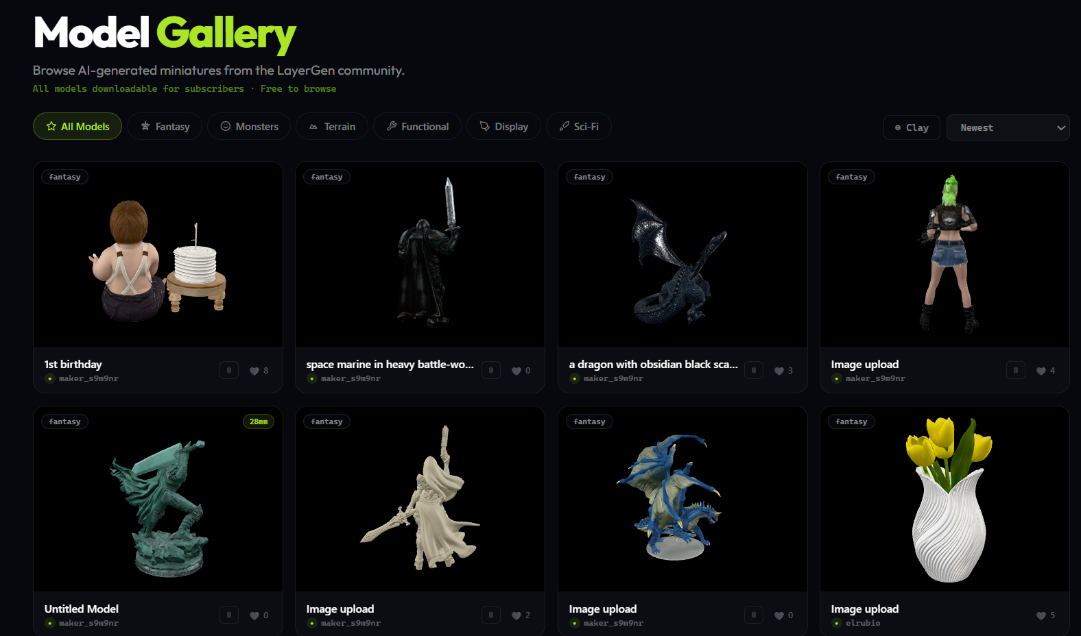 LayerGen AI 是一款在 Product Hunt 上推出的新工具,讓您可以透過文字指令或現有圖片,生成可直接進行 3D 列印的龍與地下城微縮模型。