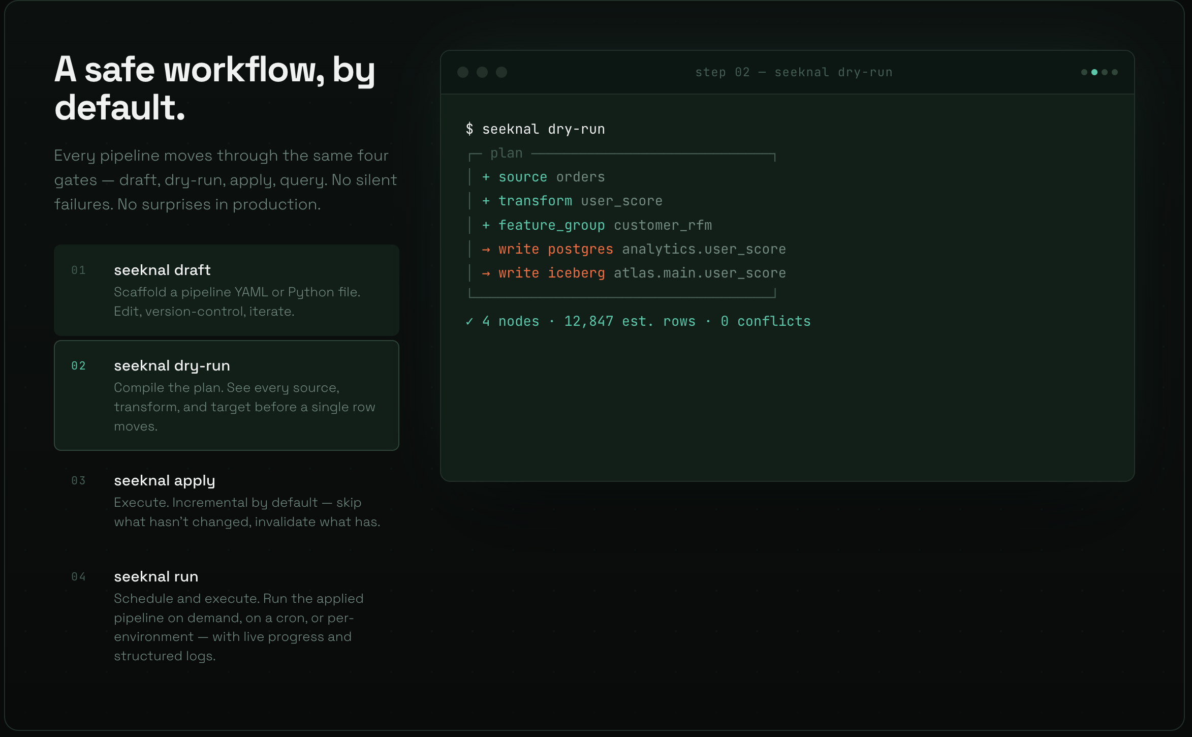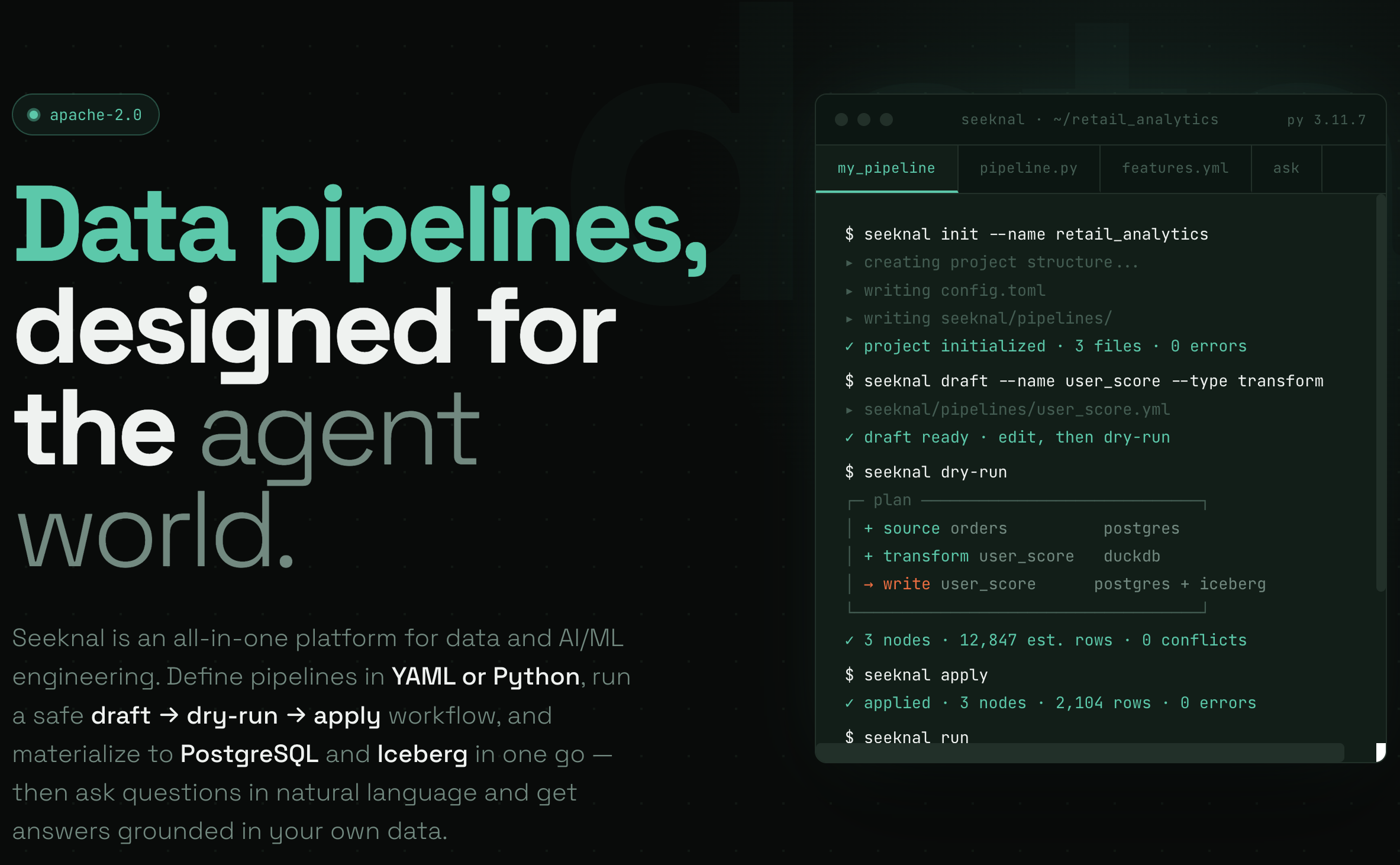 Seeknal 是一款專為簡化數據與 AI/ML 流水線而設計的命令列介面,同時讓使用者能透過自然語言進行數據查詢。