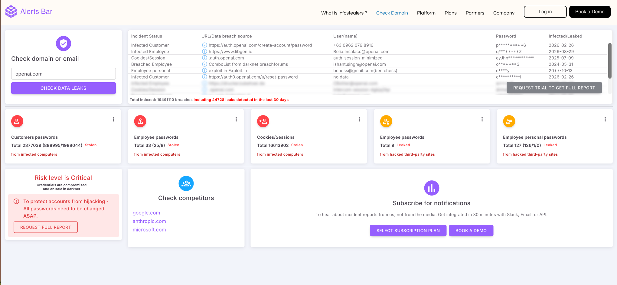 Alerts Bar:針對受感染電腦與遭竊數據的深網監測工具