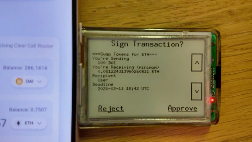 [Onchain Clear Signing Specification] 定義了類型系統和顯示識別碼。開發者編寫顯示規範,描述函式的調用數據應如何被解讀和顯示,並將其直接嵌入合約中。每個規範都由一個緊湊的 32 位元組摘要唯一識別,任何設備都可以在沒有網絡訪問的情況下,根據規範本身在本地計算出該摘要。
