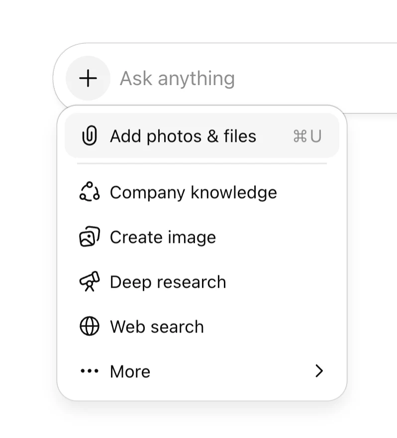 ChatGPT 允許您直接在對話中上傳並處理檔案。這意味著您無需離開聊天介面,即可分析試算表、編輯文件、摘要 PDF 或處理圖片。