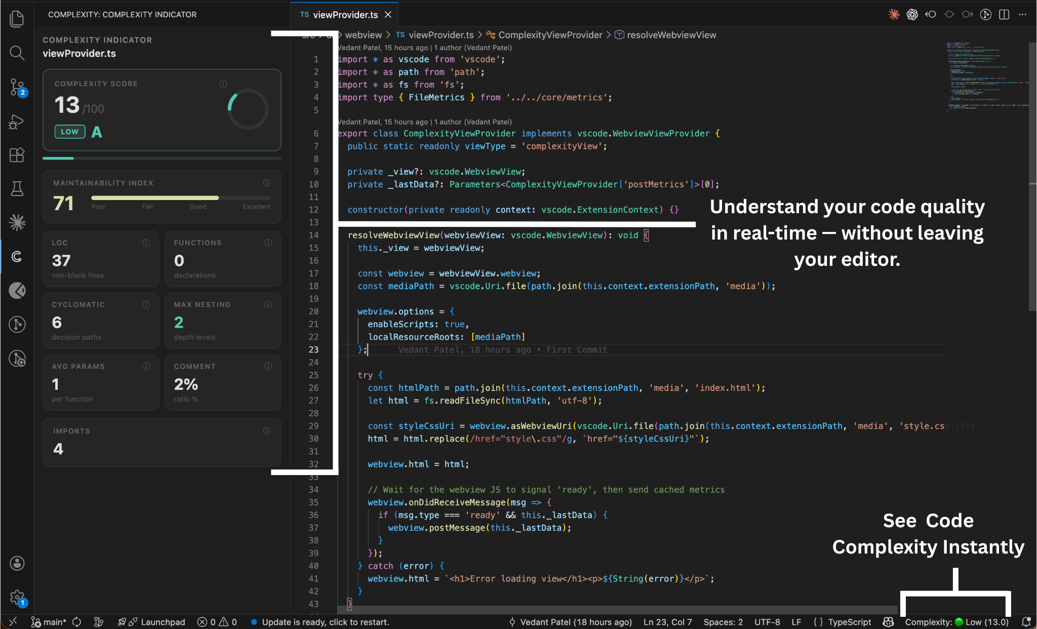 Complexity Indicator 是一款開發者工具,旨在監控程式碼品質,並在您的程式碼庫達到難以維護的複雜程度時發出提醒。