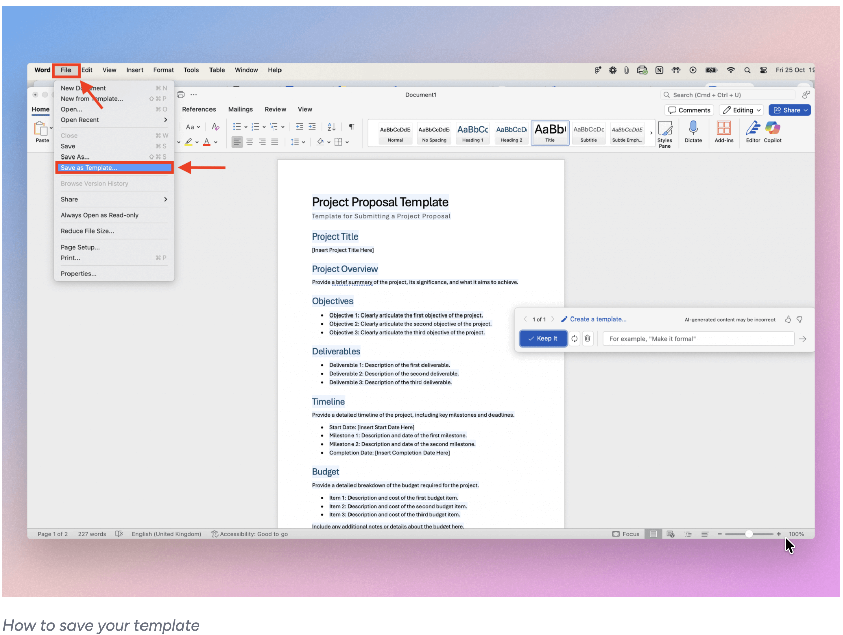 利用 AI 撰寫草稿、編輯與格式化 Word 文件