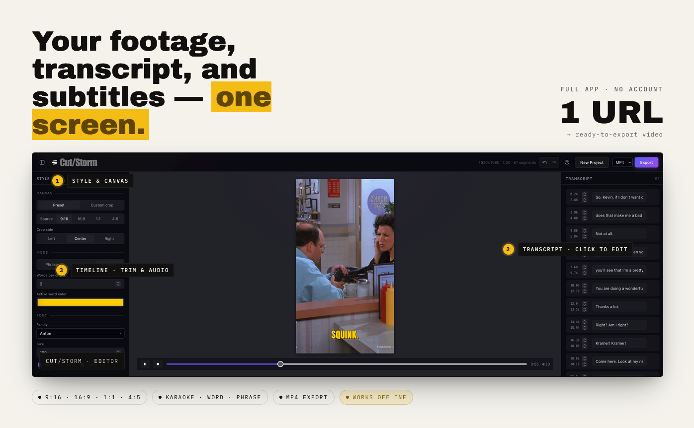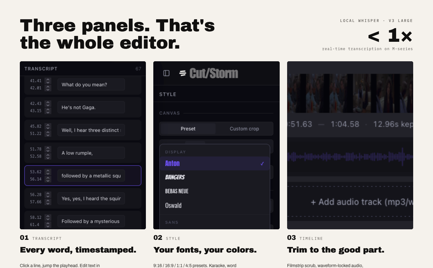 從任何地方貼上影片、嵌入字幕、剪切、裁剪並分享,Cut/Storm 是一個讓你輕鬆處理影片並分享至各平台的工具。