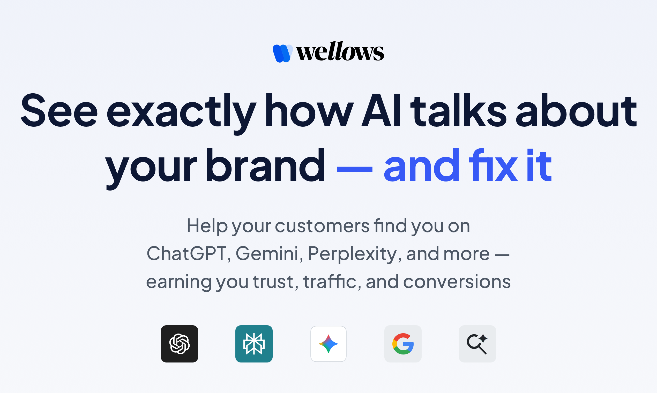 查看人工智慧如何評價你的品牌並加以修正。Wellows 讓你掌握 AI 對你品牌的認知,並提供優化建議以確保品牌資訊的準確性。