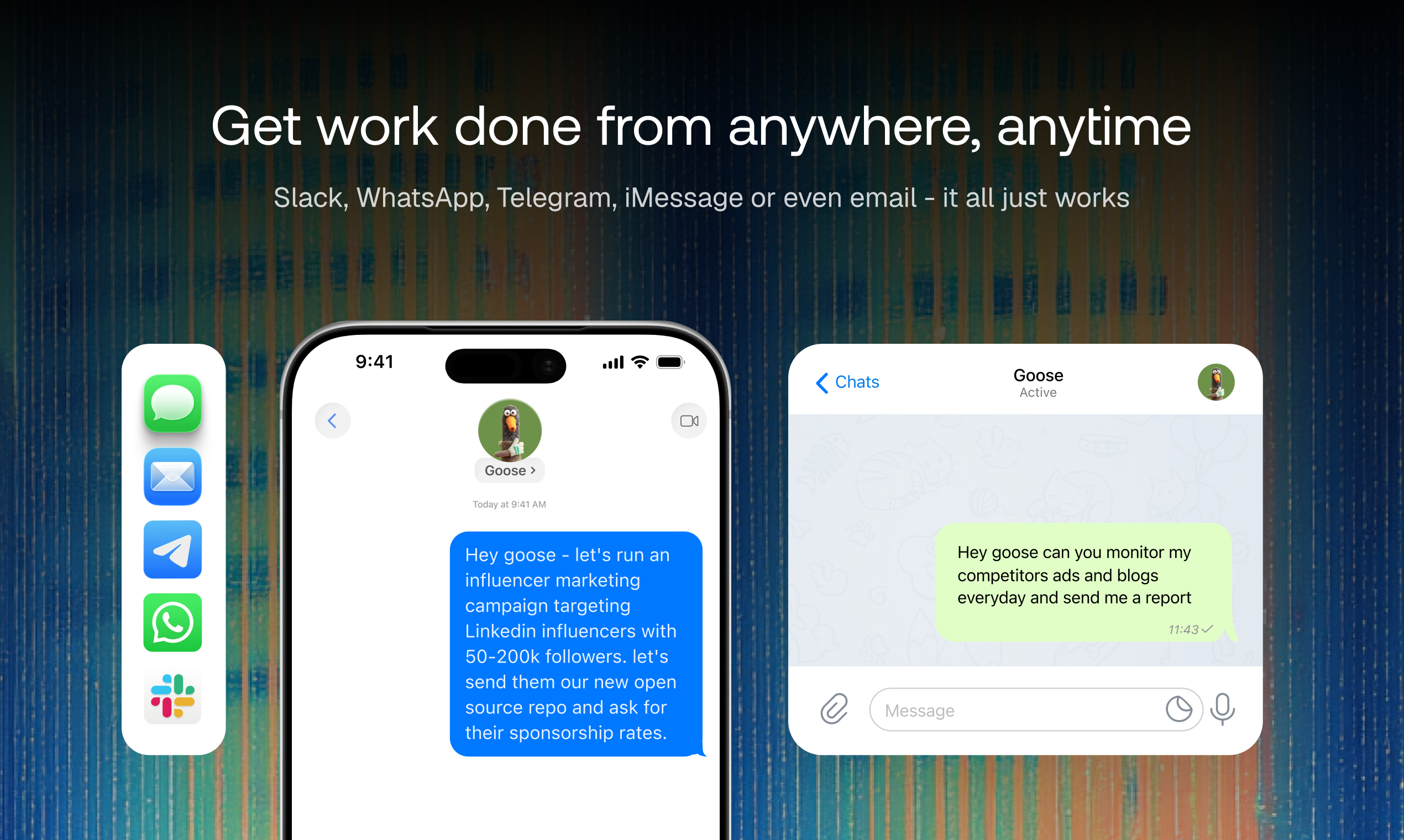 Goose 是一款專為市場進入團隊設計的 AI 同事,擁有自己的電腦與記憶功能,能協助自動化處理複雜的工作流程。