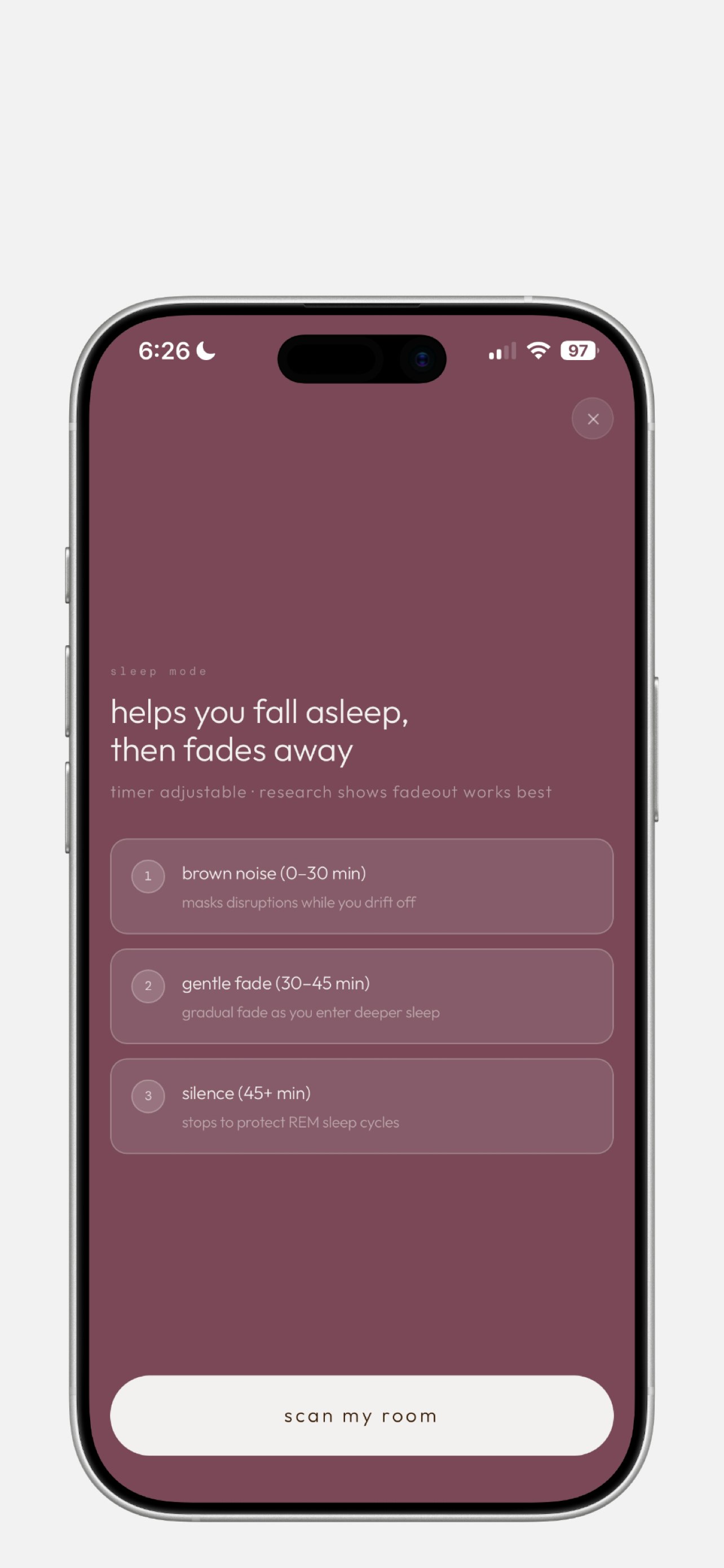 shush 是一款具備空間感知能力的噪音工具。它更安靜、更聰明,能為您帶來更好的快速動眼期(REM)睡眠品質。