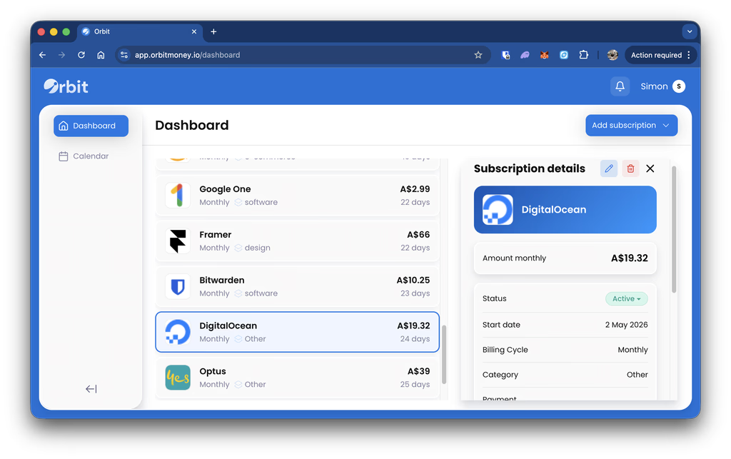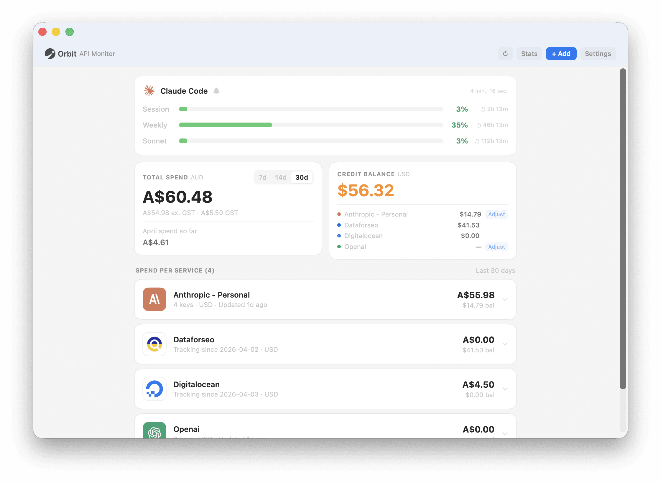 Orbit Money 是一個集中化的儀表板,讓你在同一個地方就能追蹤你所支付的每一項 API 和工具費用。