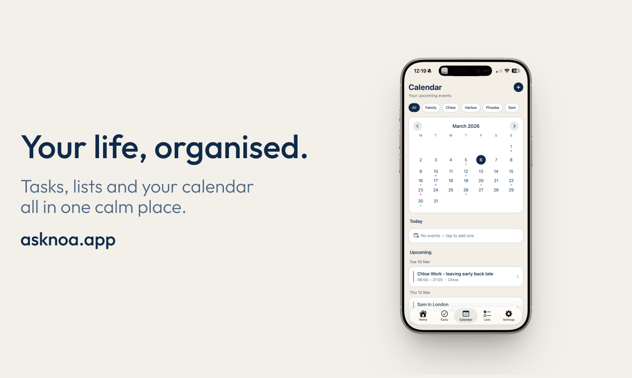 Noa 是您的生活行政助手,能快速處理您的空檔查詢與行程預約。