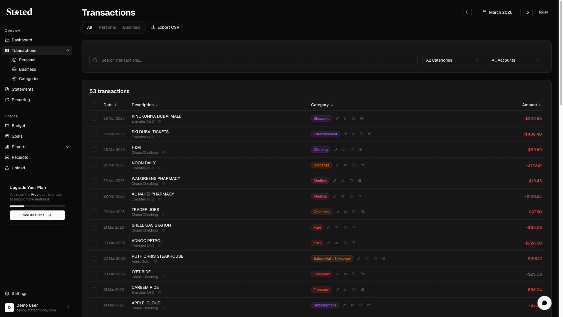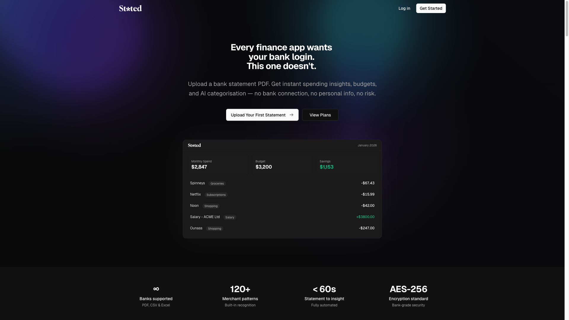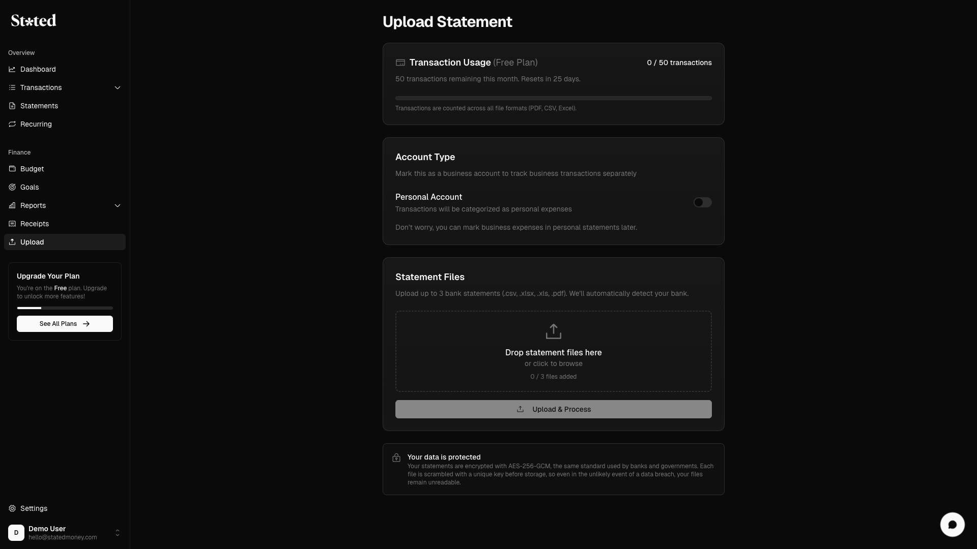 Stated:無需銀行登入的隱私優先 AI 財務追蹤工具