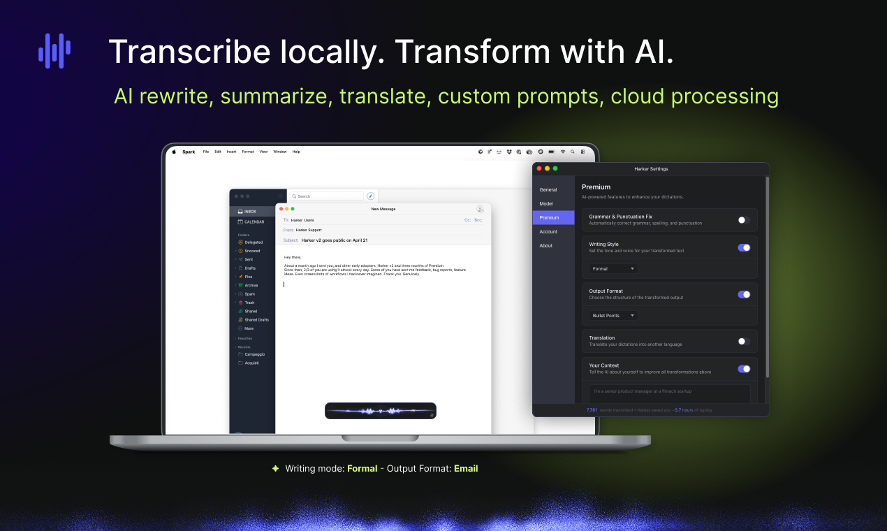 Harker 2.0 是一款在 Product Hunt 上推出的 AI 生產力工具,能讓使用者以說話的速度將腦中的想法即時轉換為文字。