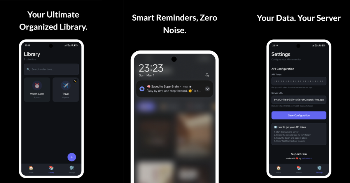 SuperBrain 是一款專為安卓系統設計、由人工智慧驅動且支援自託管的數位第二大腦,能協助使用者私密且高效地管理個人資訊。