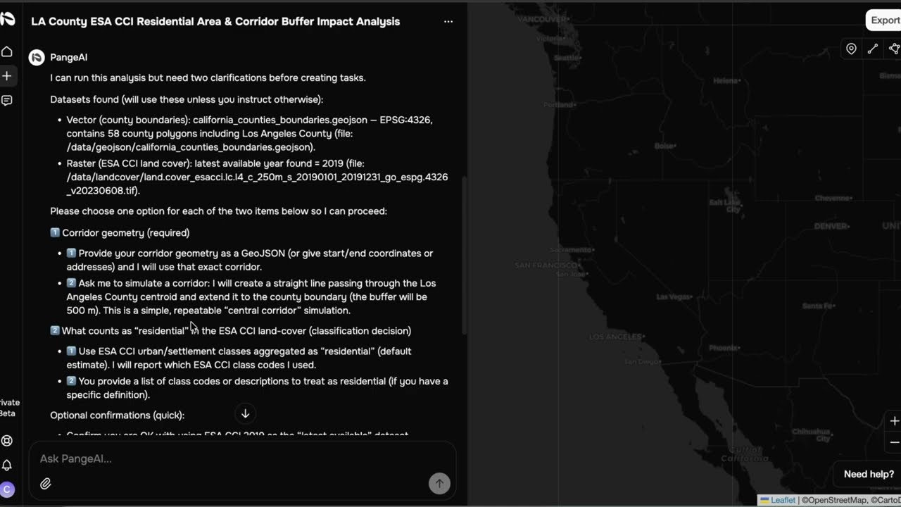 PangeAI 是一個代理驅動的平台,旨在提供即時的空間分析與決策,並利用先進的製圖與雲端技術。