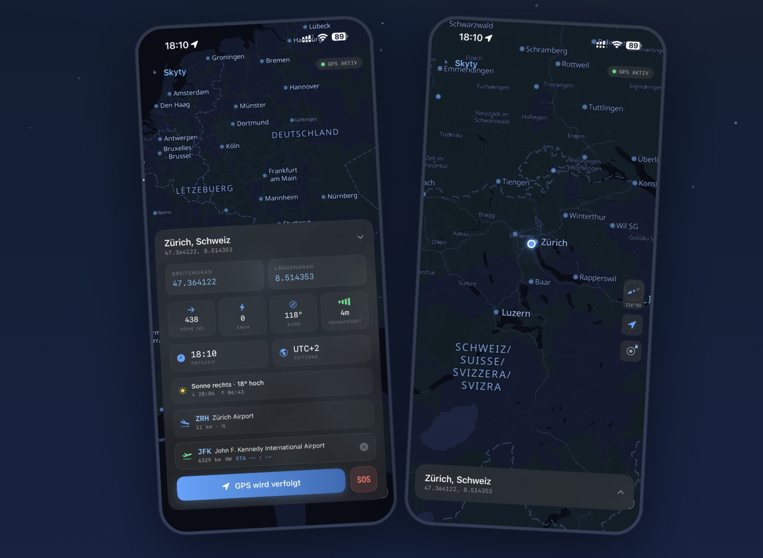 Skyty 是一款飛行追蹤工具,提供包含高度、地速在內的即時數據,以及最近機場的資訊與預計到達時間。