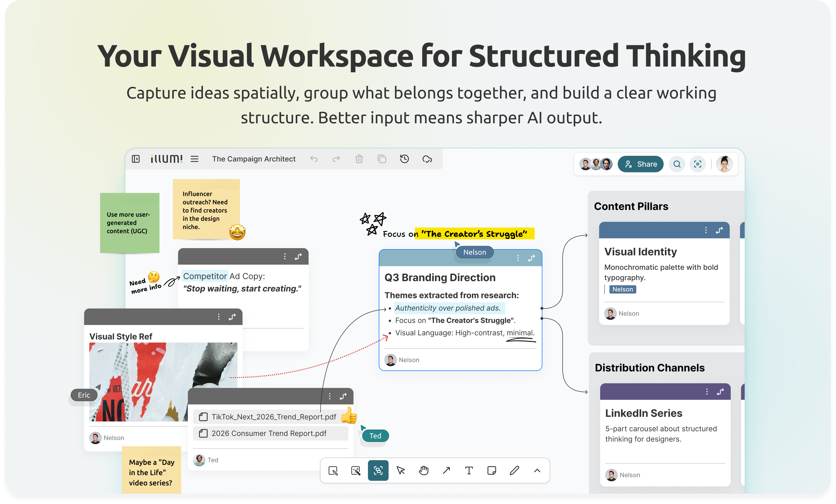 illumi 是一個 AI 驅動的視覺化工作空間,旨在簡化從最初構思到最終項目交付的整個創意流程。