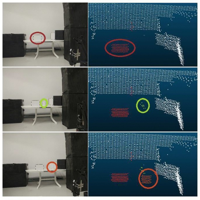 As we can see in the block diagram (Fig. 14), the system works based on several separate parts coalesced in such a way as to obtain the desired effect. Zhou, et al. [40] ascertain that the most crucial step is to scan the area we are studying and to find the objects of interest. Scanning the zone takes place at the beginning of the program to determine what the environment looks like, and then after each completed motion is detected and completed. Li, et al. [41]. argue that it is essential that the movement has finished because the person or device that placed the object in the zone or took it from it would cover the area and introduce errors.