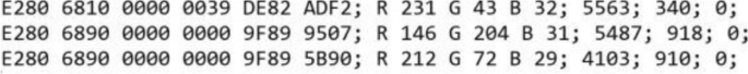 Example of text data points from the RFID reader interrogation
