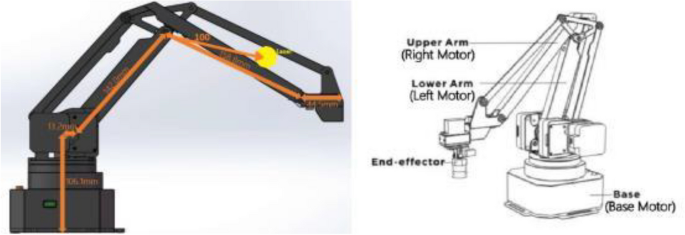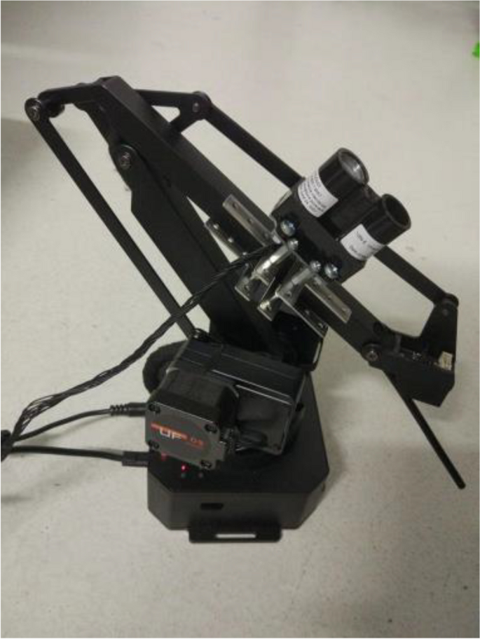 The study employs a uArm Swift Pro robotic arm that is 4-axis, high-performance, precision robot arm controlled by Atmege Mega [33]. It has high- quality stepper motors to achieve an accuracy of 0.2 mm. Its maximum load is 500 g, so with a laser range-finder weight of 30 g and the materials used for assembly, there are no problems with movement.