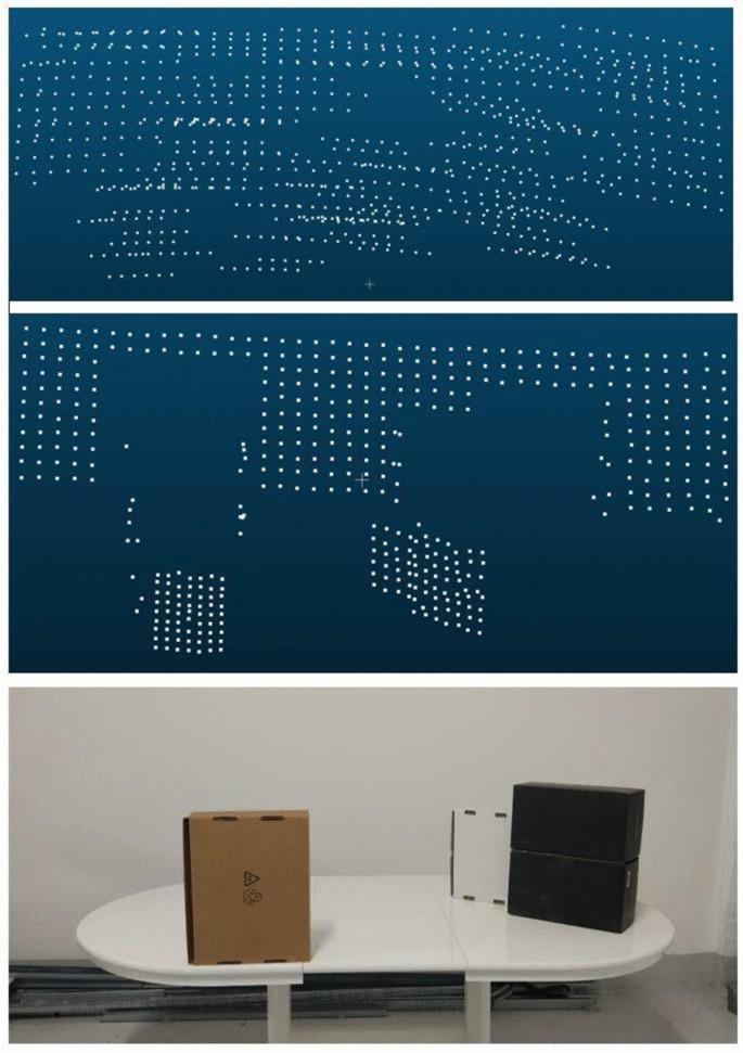 With the available device, we can generate a point cloud, the equivalent of a 3D model of our environment. Based on this scan, further object recognition ensues, and the quality of this data depends on different algorithms and success in recognizing data objects.