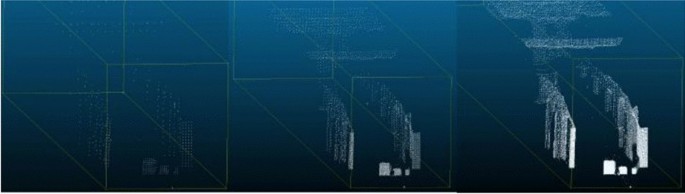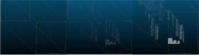 The outcome is depicted on an Azure cloud- hosted SQL database with colored entities due to the artifact's events. Each of the several shades of blue indicates a different entity. The use of text files is instrumental in keeping keep track of all elements and their related shades. The object is readily apparent in the graphic below as a cluster of points (Figs. 12 and 13).