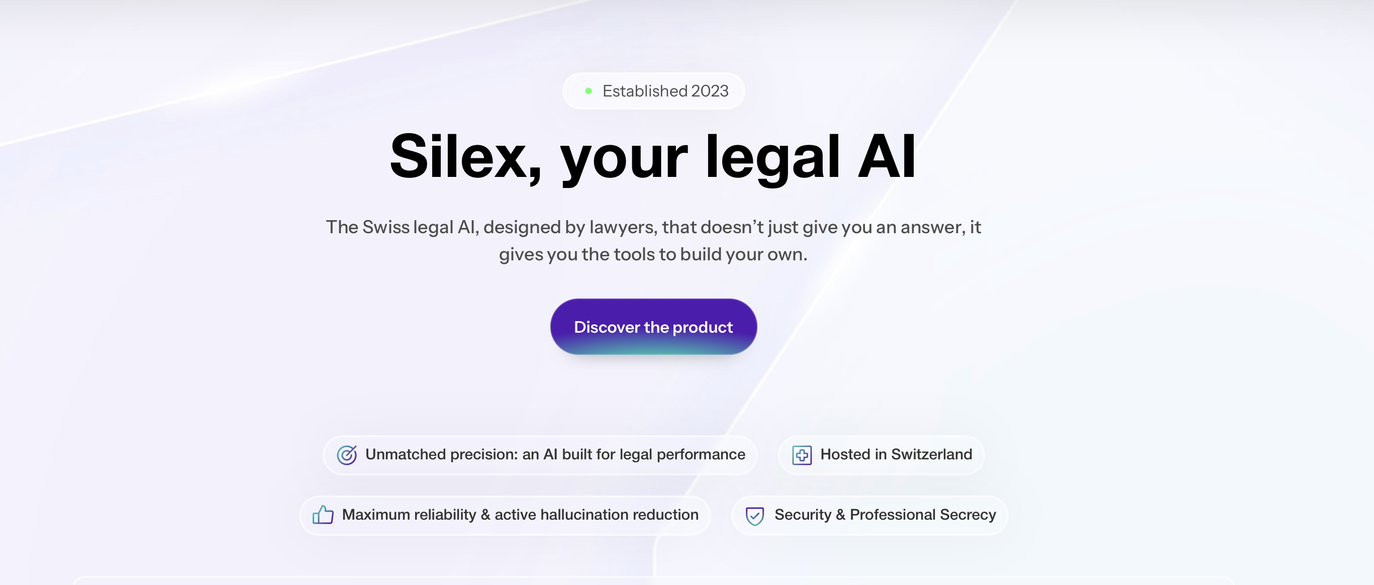 Silex 是一個專為瑞士法律市場設計的專業人工智慧平台,由法律專業人士開發,旨在簡化工作流程並強化法律研究。