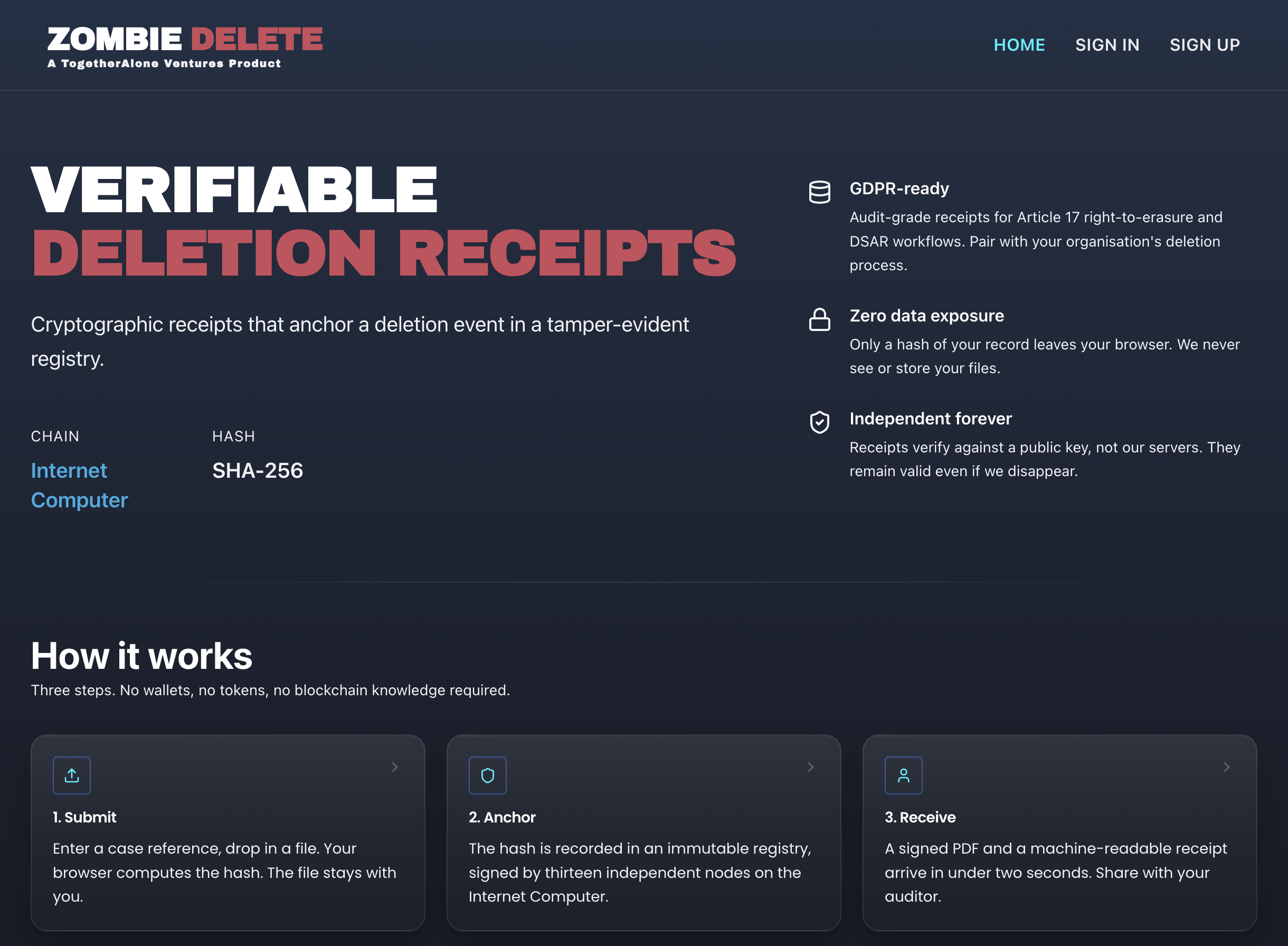 Zombie Delete 是一個旨在於各種環境中提供可證明數據刪除服務的新平台,將自己定位為數據刪除合規領域的 Docusign。