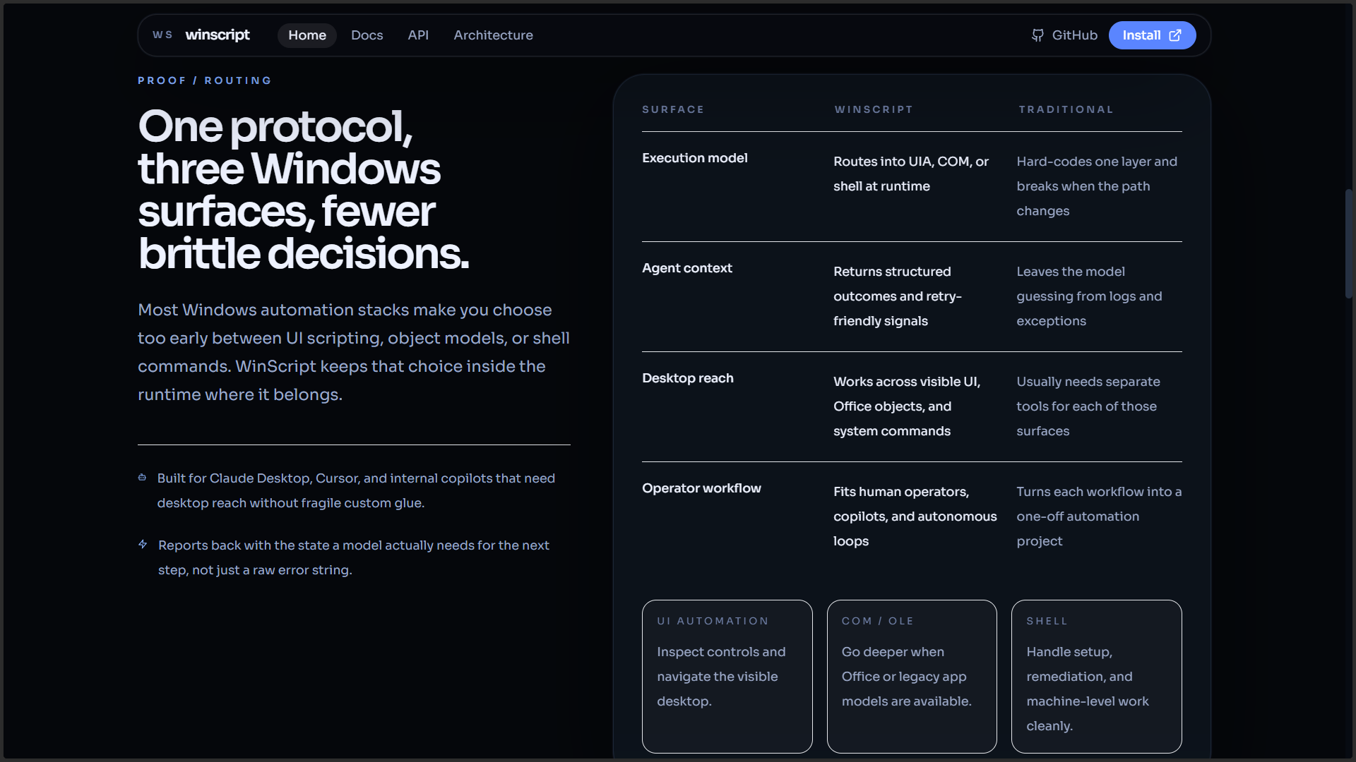 WinScript 是一款專為 Windows 設計的新工具,旨在提供類似 AppleScript 的自動化功能,並特別針對 AI 驅動的桌面控制進行了優化。