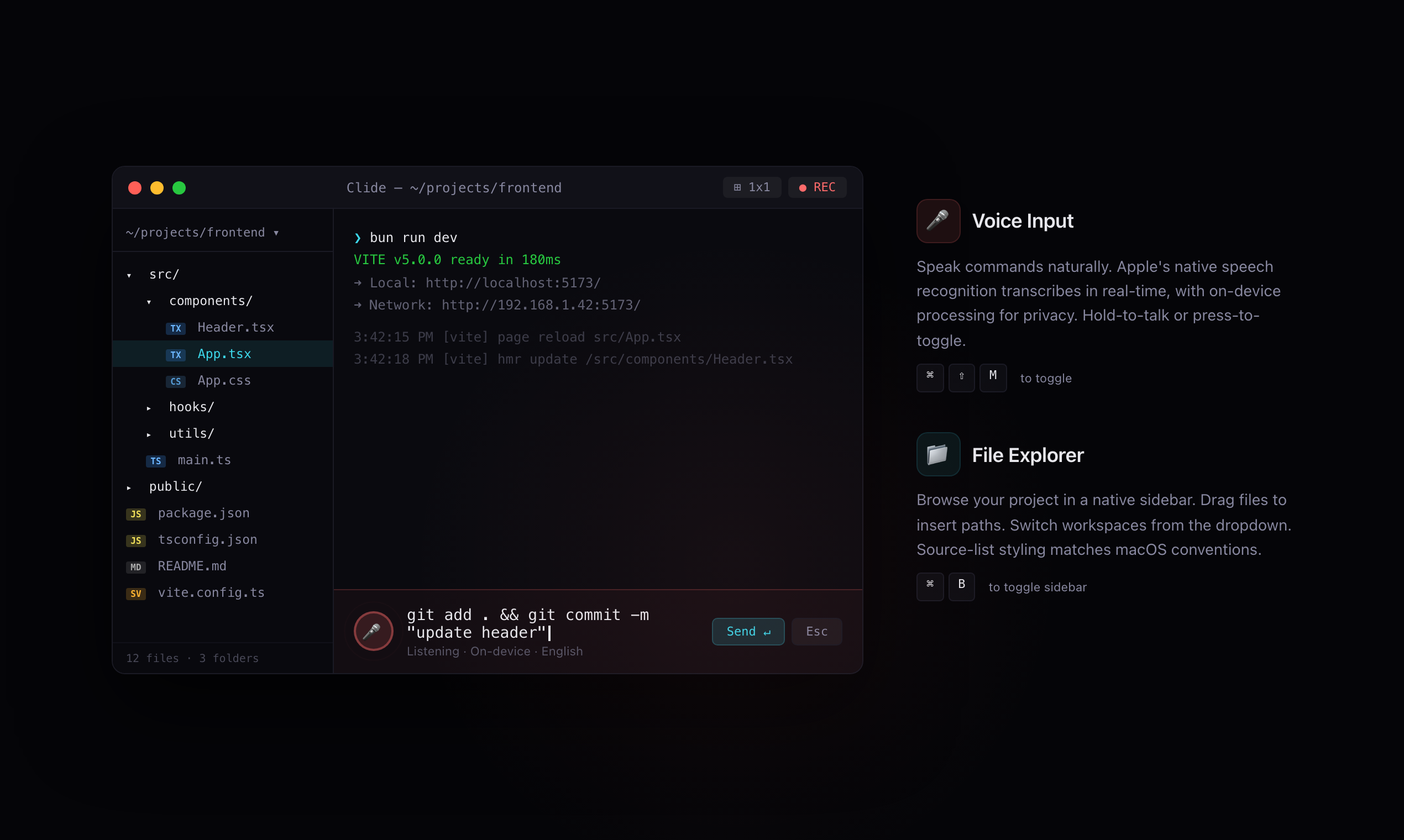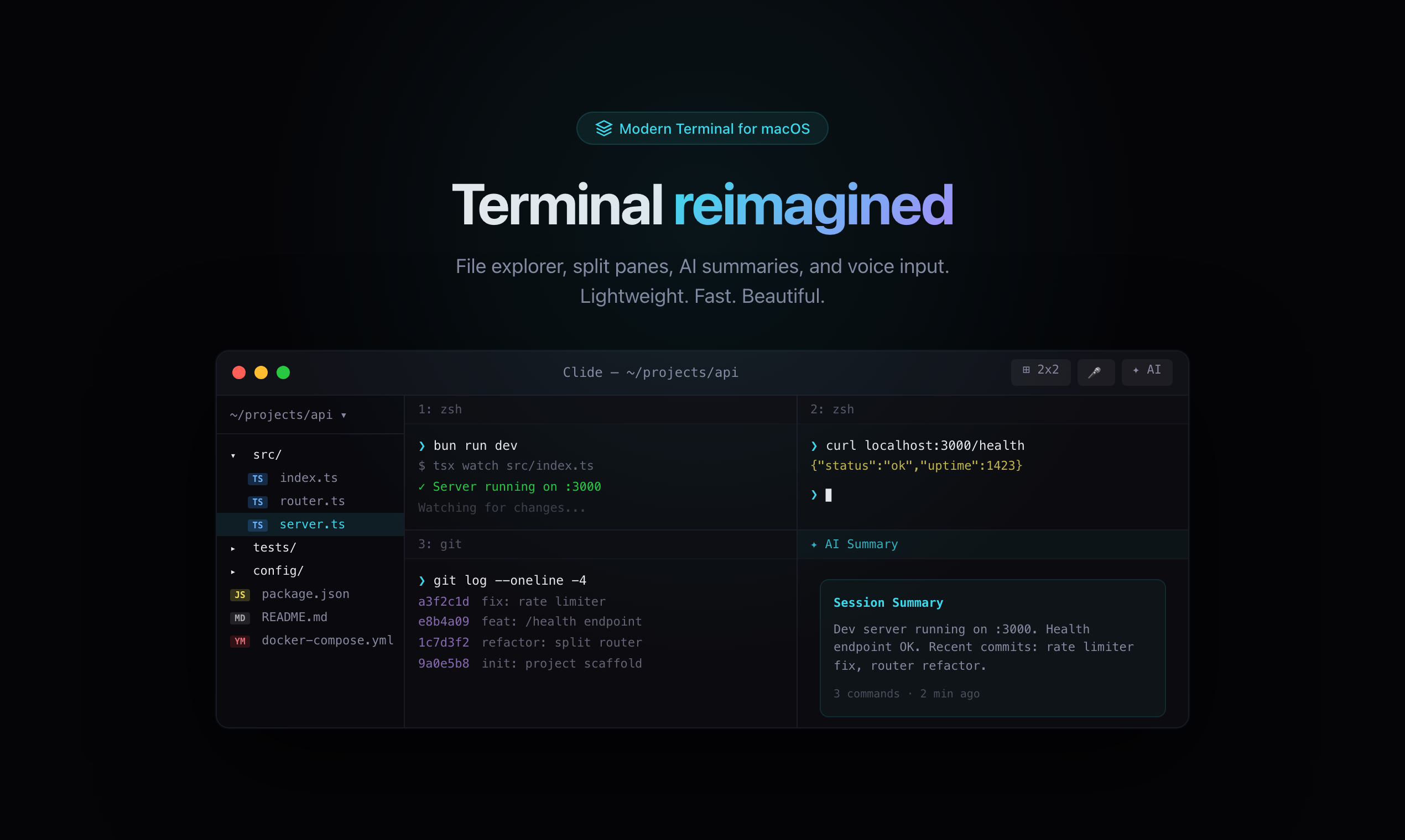 Clide 是一款具備網格佈局的終端機,並內建能驅動您殼層環境的 AI。
