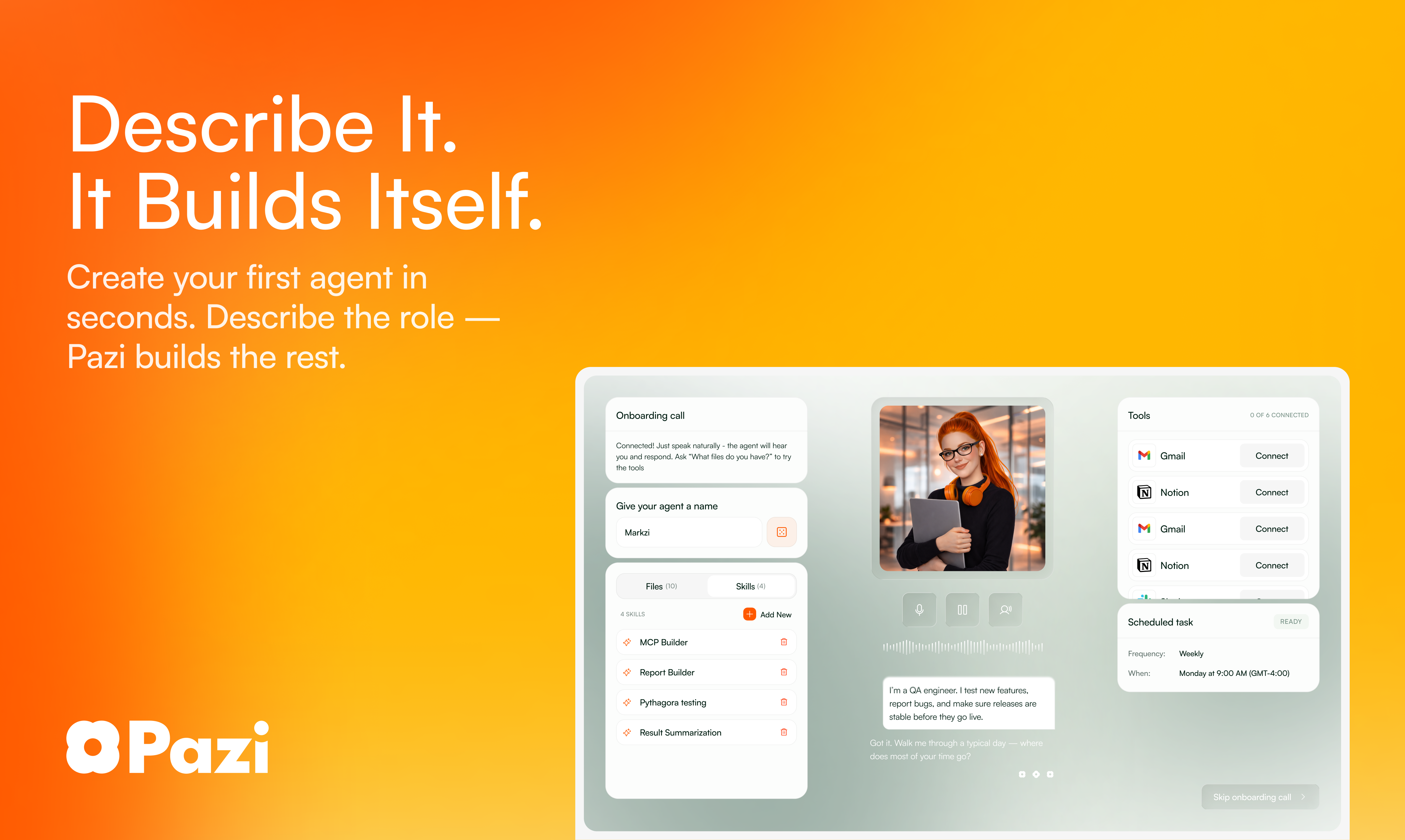 Pazi 提供針對各種任務設計的專門代理,能夠與您的工具連接並處理各項工作。