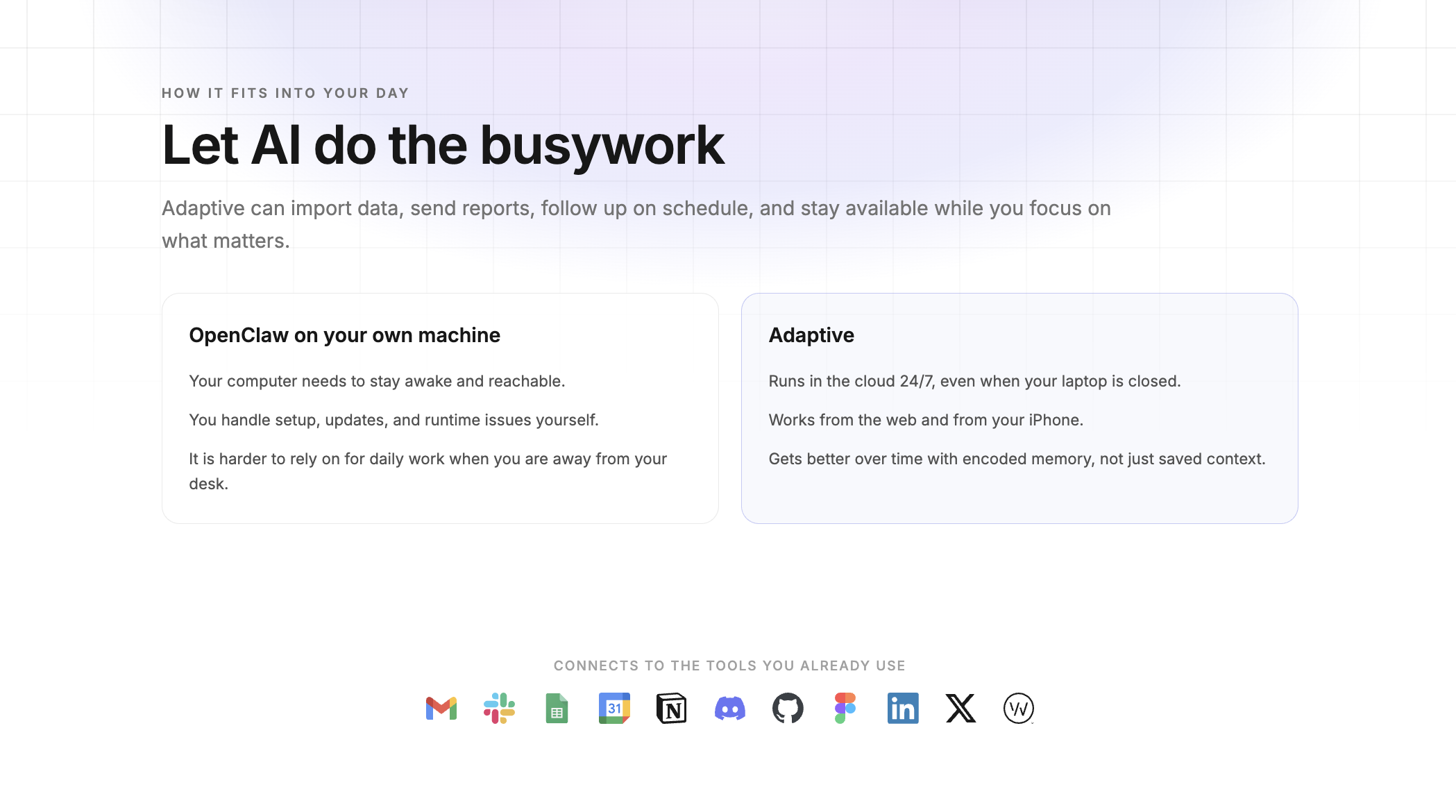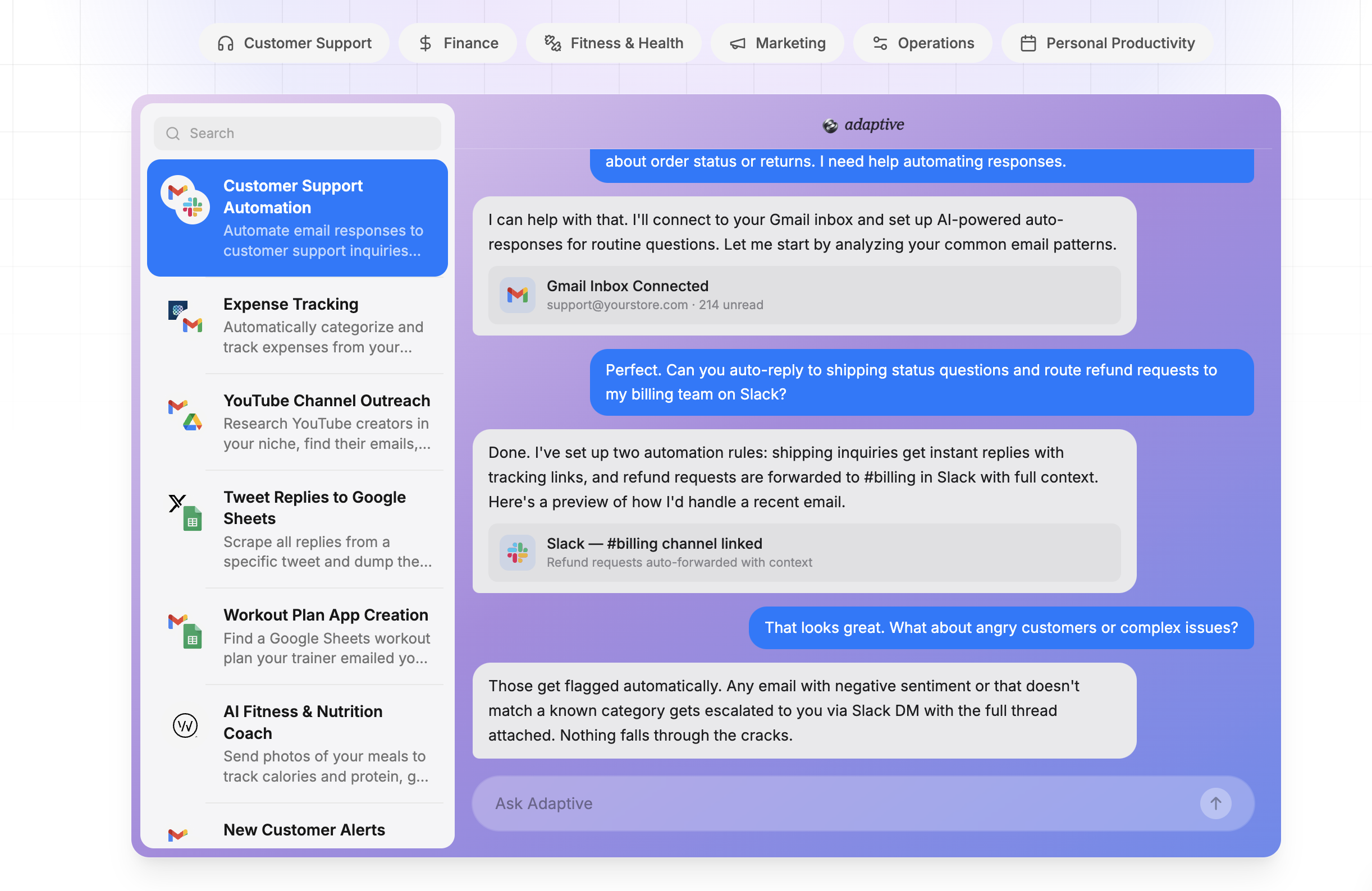 Adaptive 是一款人工智慧工具,旨在根據您期望達成的結果來自動化日常例行工作,讓您不再需要手動設定繁瑣的步驟。