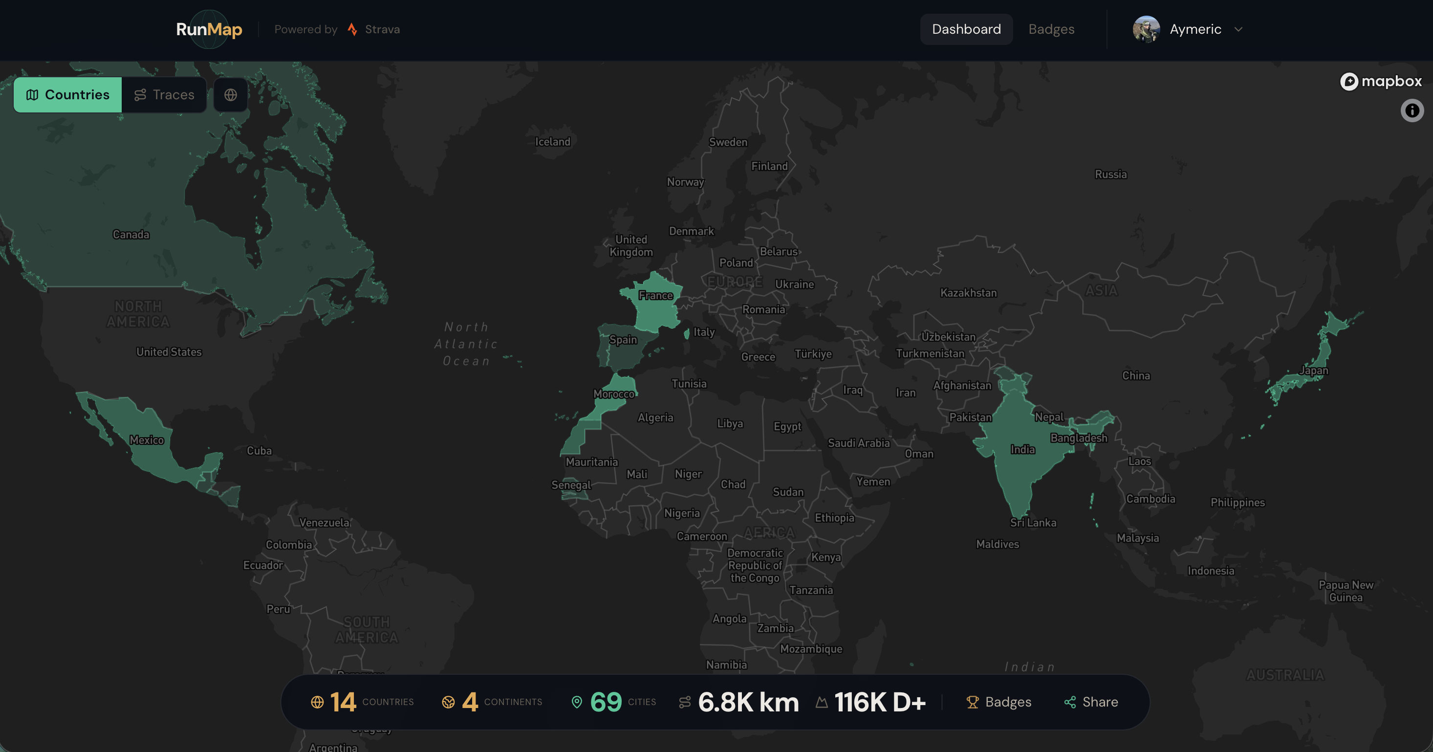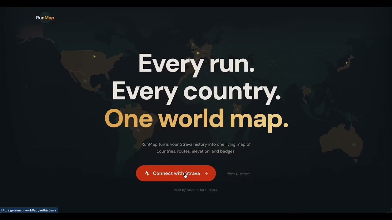 將你的 Strava 跑步紀錄轉化為一場世界地圖冒險,透過 RunMap 讓跑步數據以更具互動性與視覺吸引力的方式呈現。