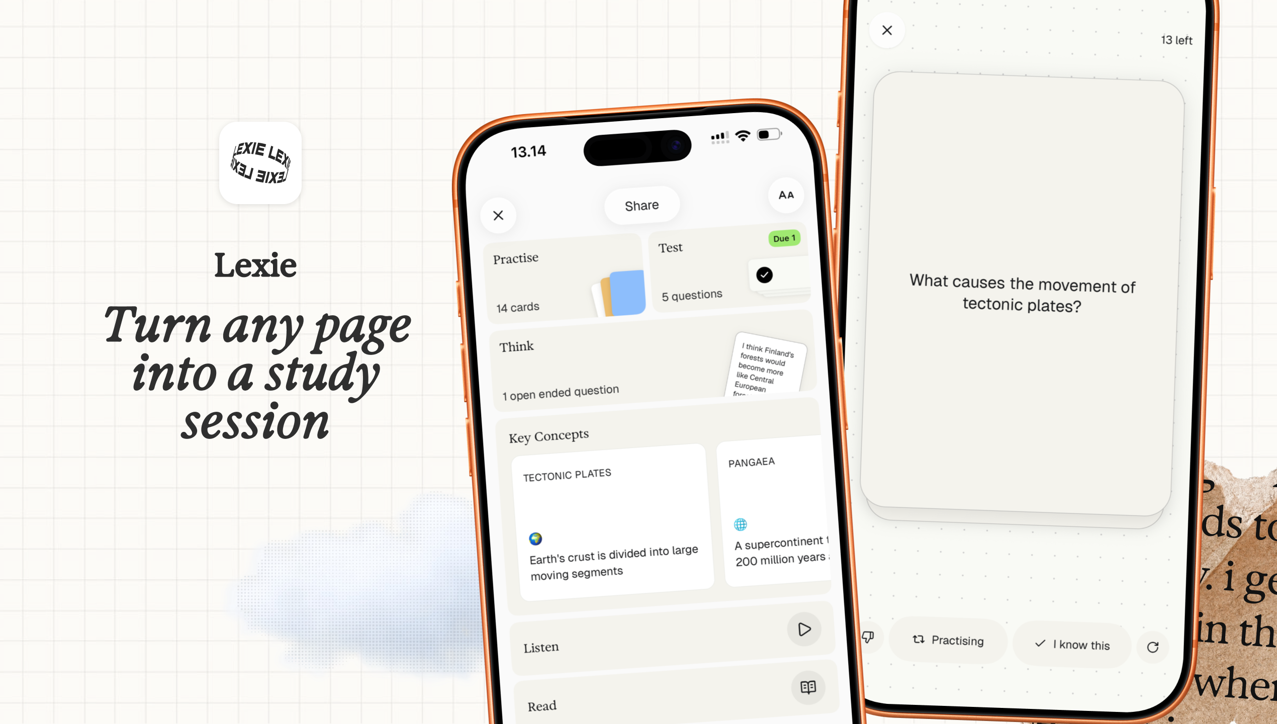 Lexie 是一款人工智慧驅動的工具,讓你拍下學習筆記,並在考試前生成測試題來進行有效複習。