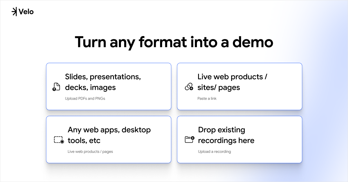 Velo 是一款創新的工具,讓您可以透過 AI 數位分身來呈現經過專業剪輯的產品演示影片。