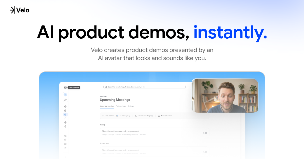 Velo:由您的 AI 數位分身呈現的專業剪輯產品演示