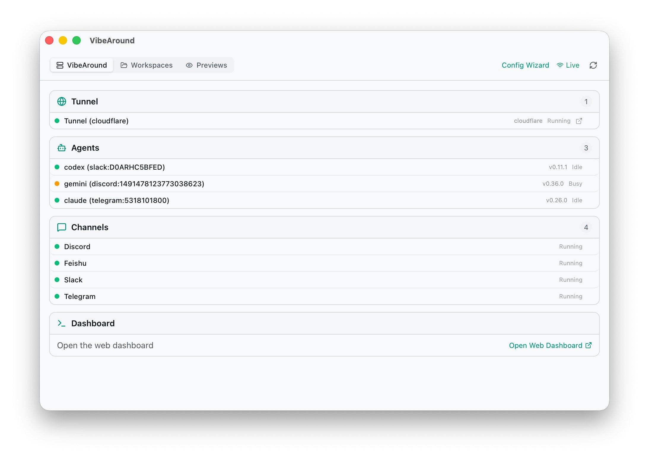 VibeAround:透過任何即時通訊軟體或瀏覽器與您的本地 AI 程式碼代理人對話