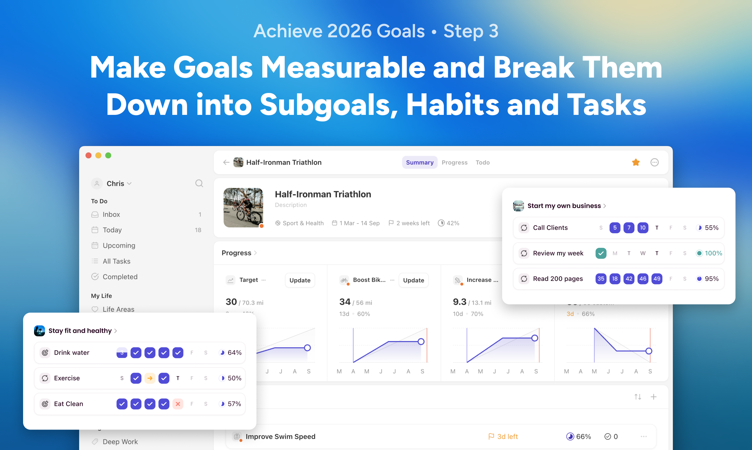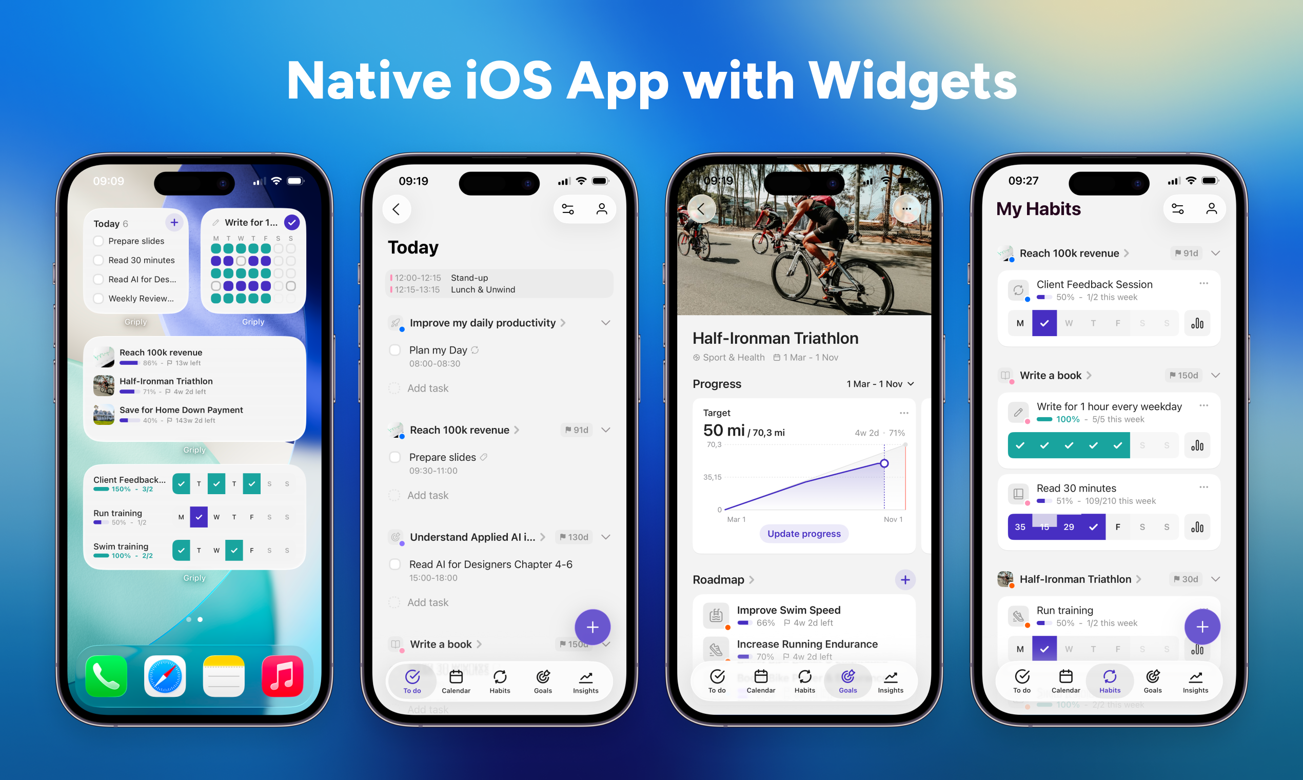 • Stay focused with iOS widgets that keep goals and tasks visible