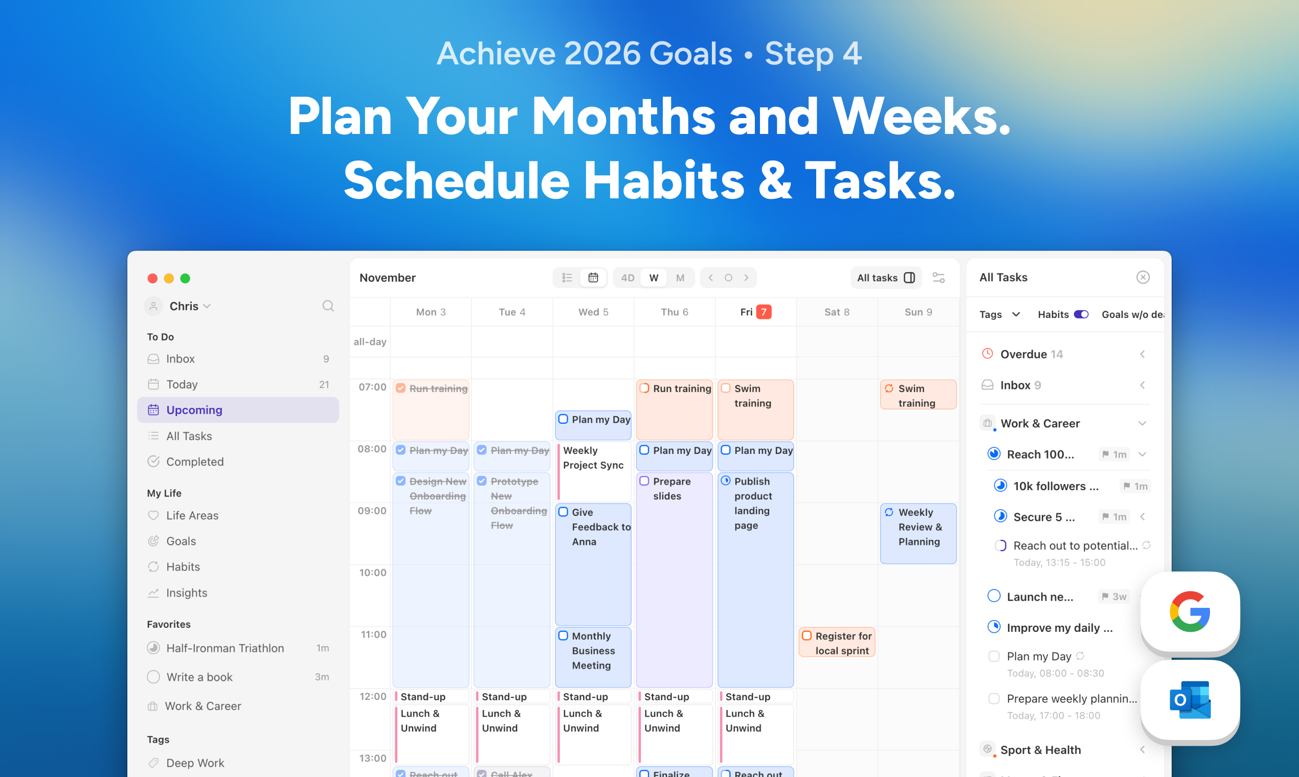 Griply is a goal planning app built to help you actually achieve your goals, not just list them. Most task managers focus on daily to-dos, but your long-term goals often get lost along the way. Griply connects goals, habits, tasks, and your calendar into one clear system.