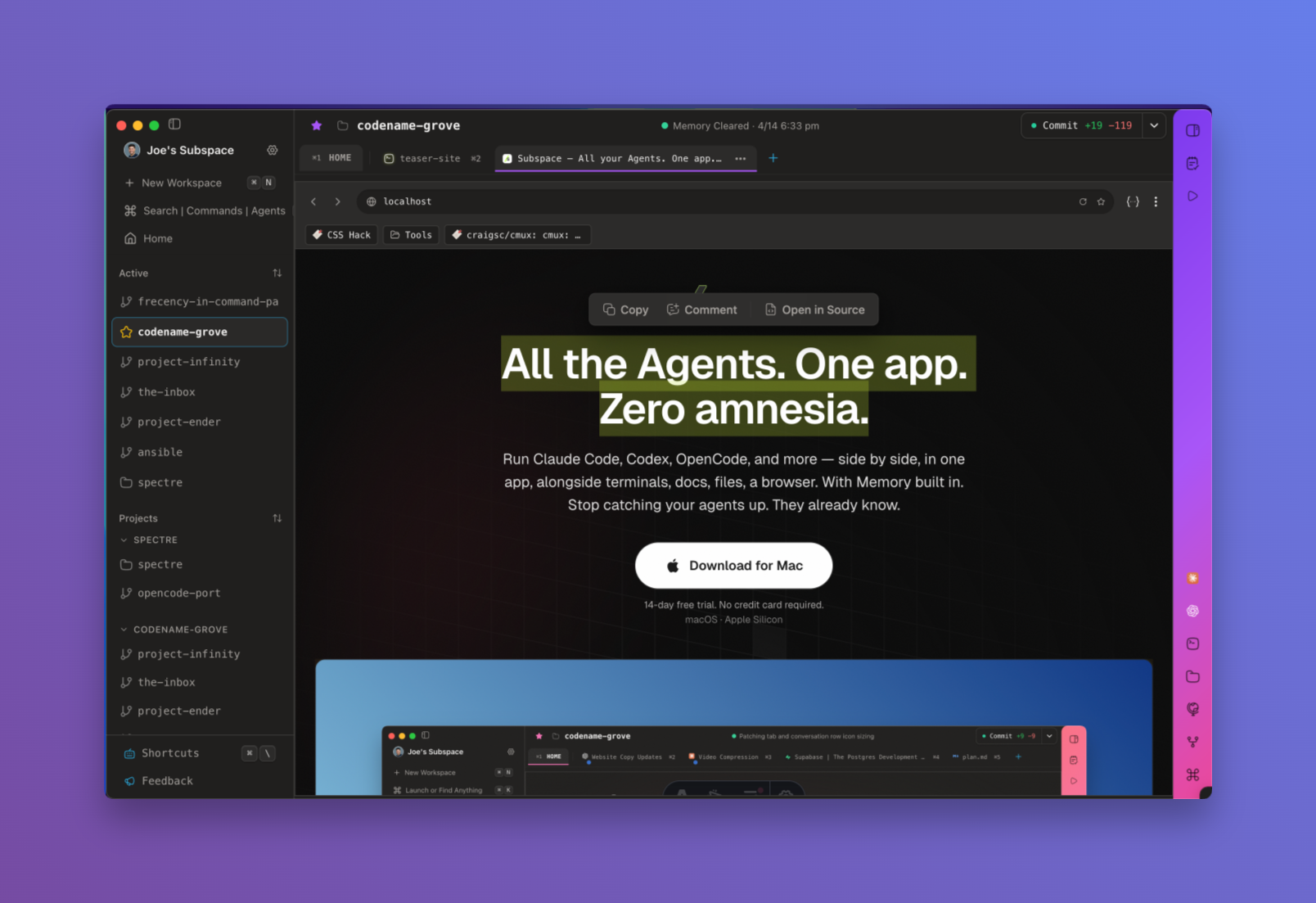 Subspace 是一個將你所有的 AI 代理整合在同一個應用程式中的平台,並提供持久的上下文連貫性。
