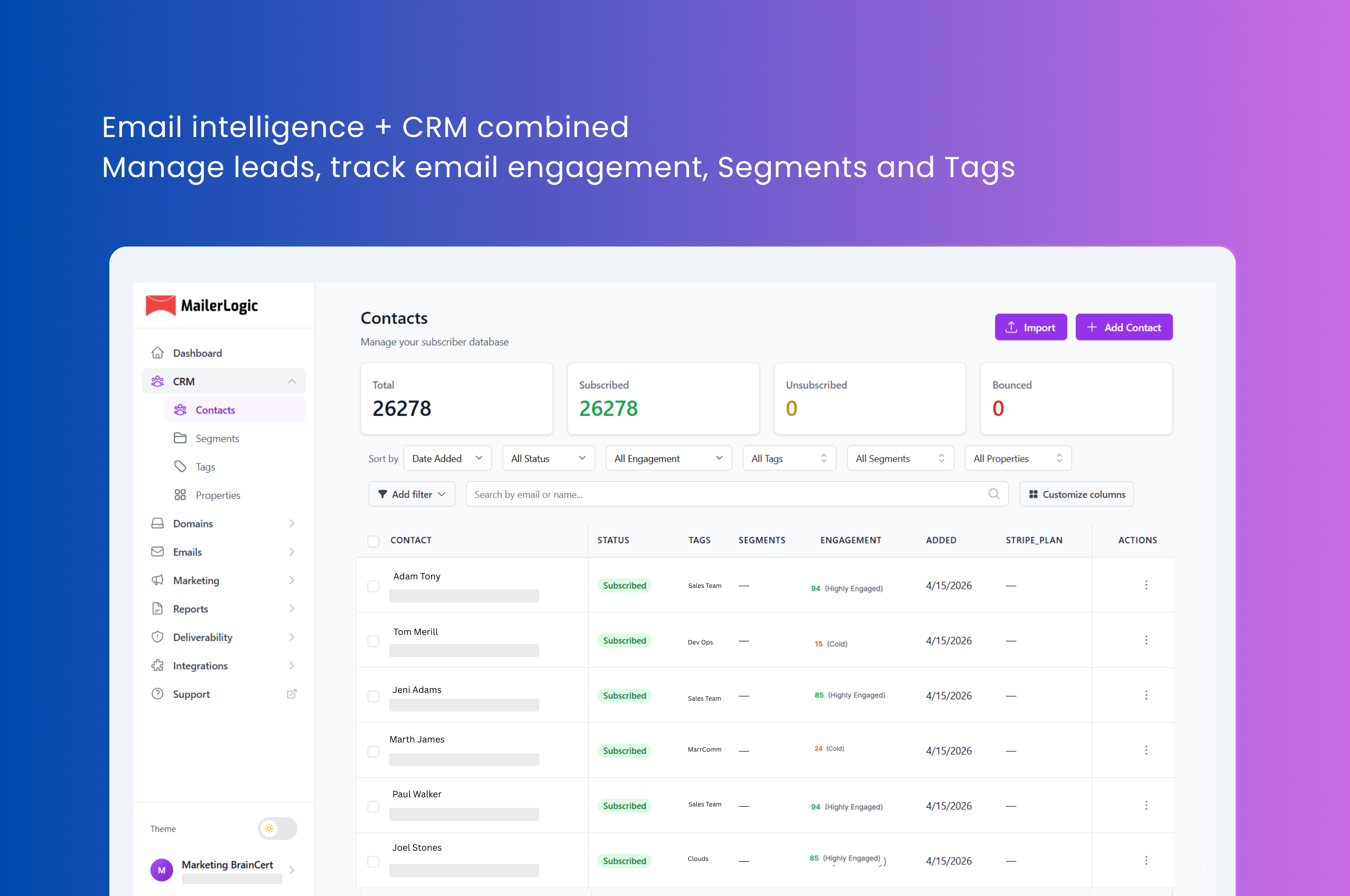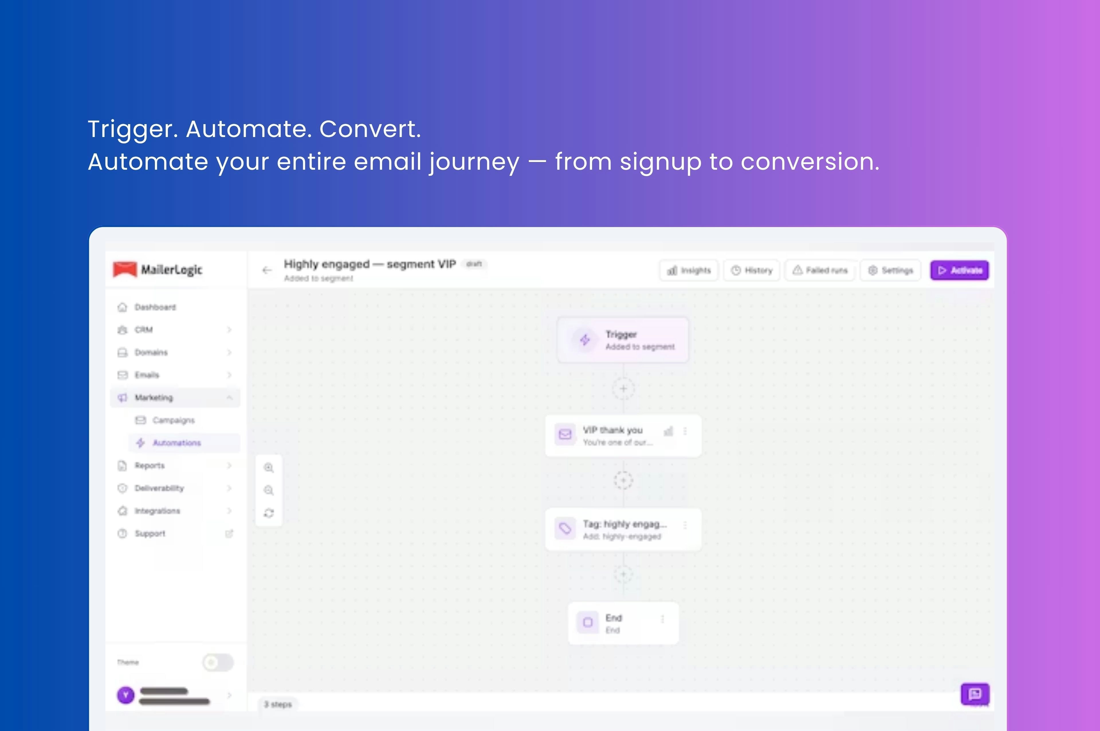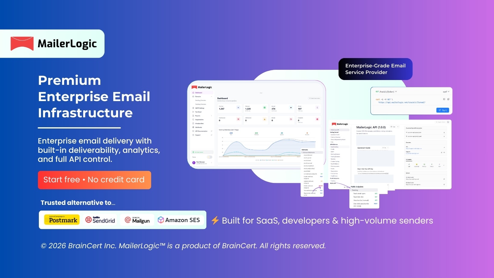 MailerLogic 是一款內建送達率智慧分析功能的電子郵件 API,旨在確保郵件能有效地送達目的地。