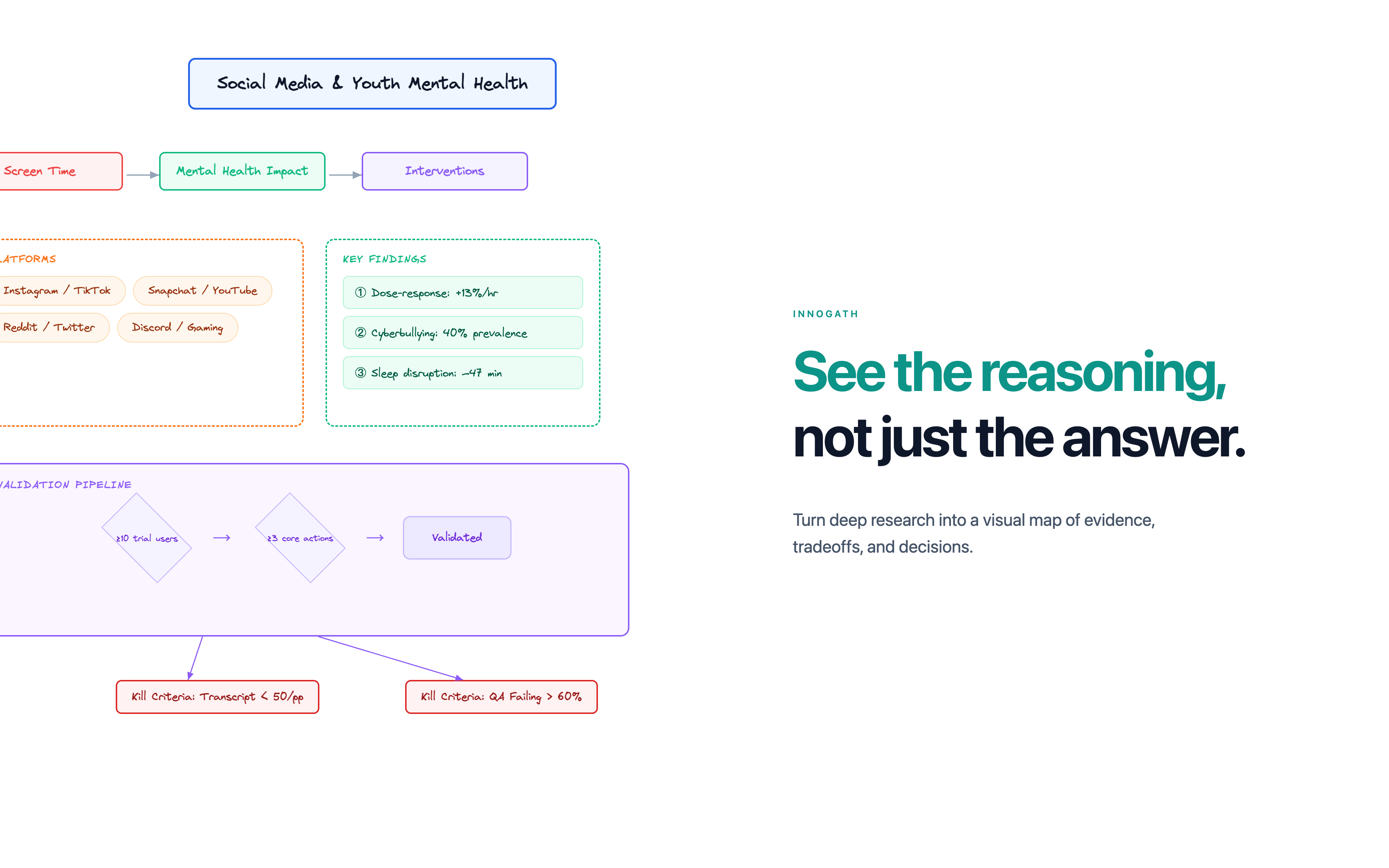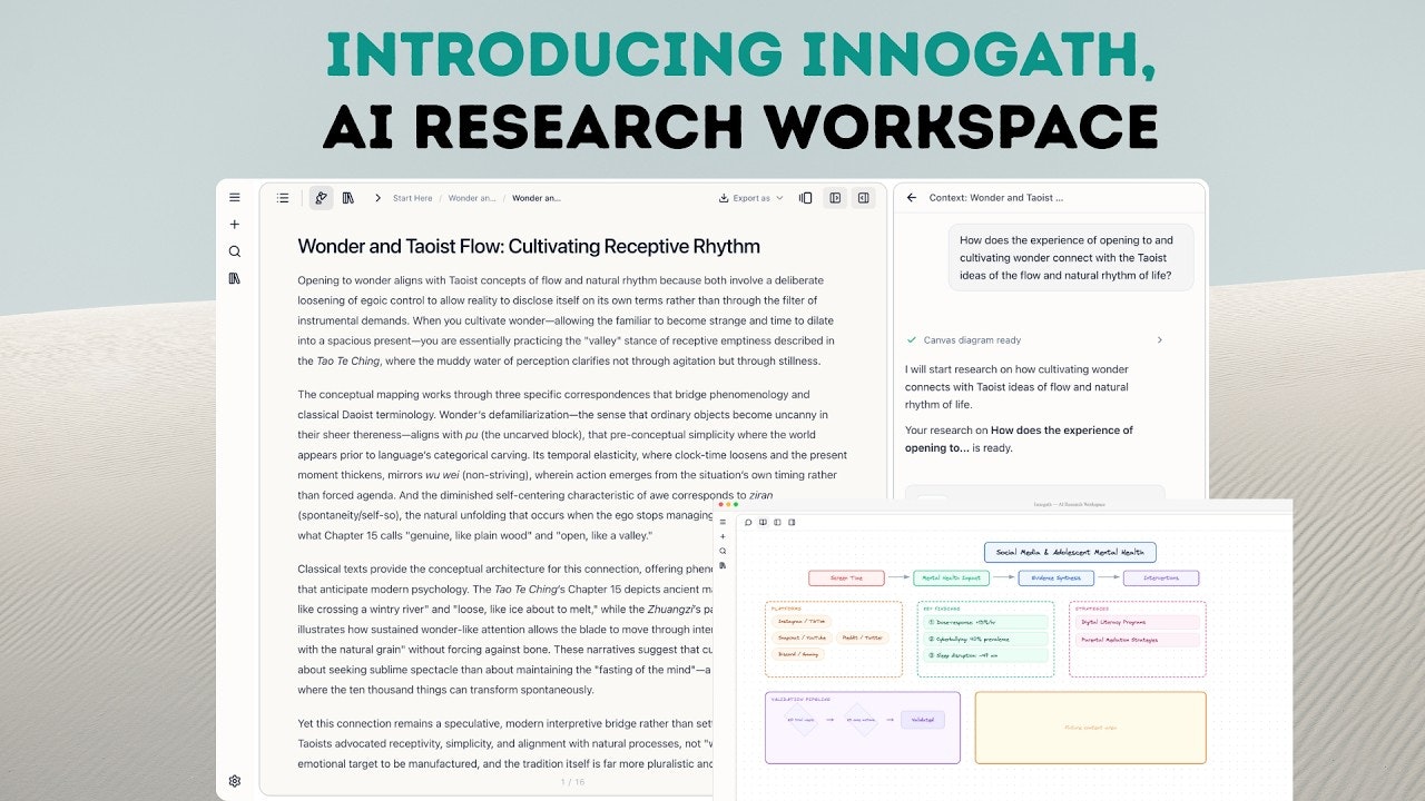 Innogath 是一款在 Product Hunt 上推出的新工具,能將深度的研究內容轉化為可導航的書籍與圖譜,讓複雜的資訊變得井然有序且易於查閱。