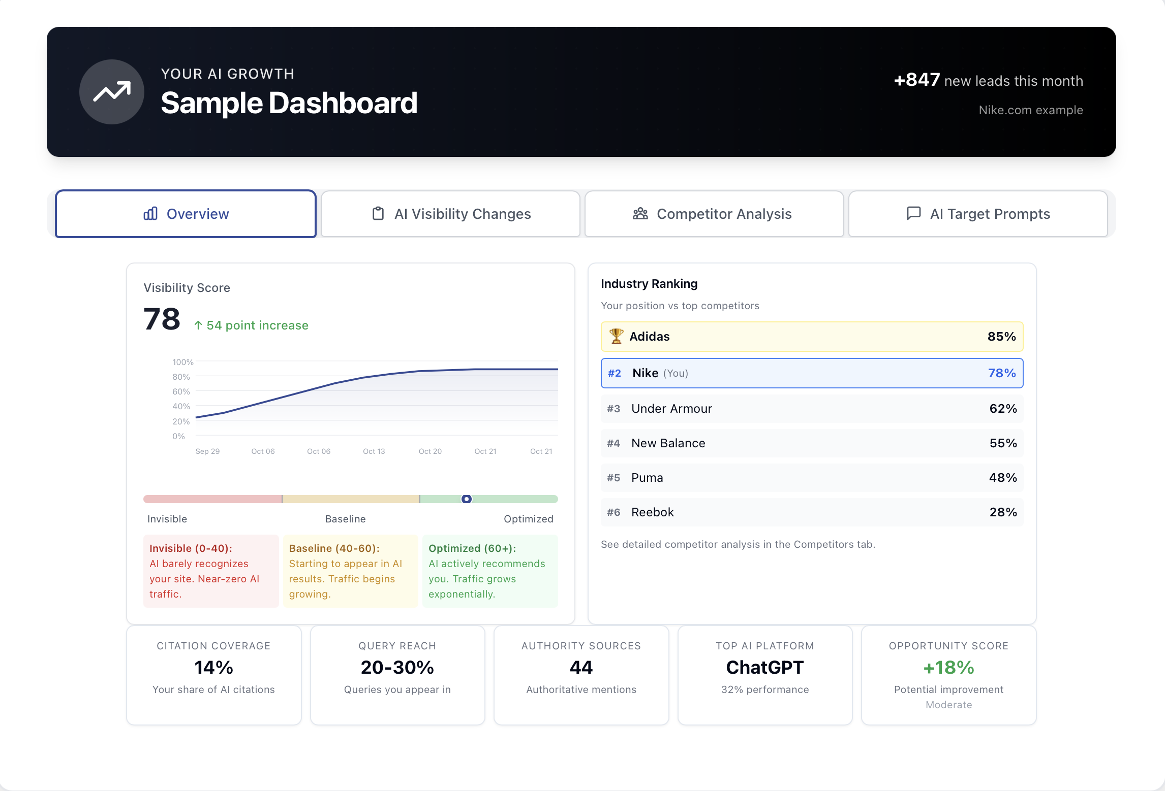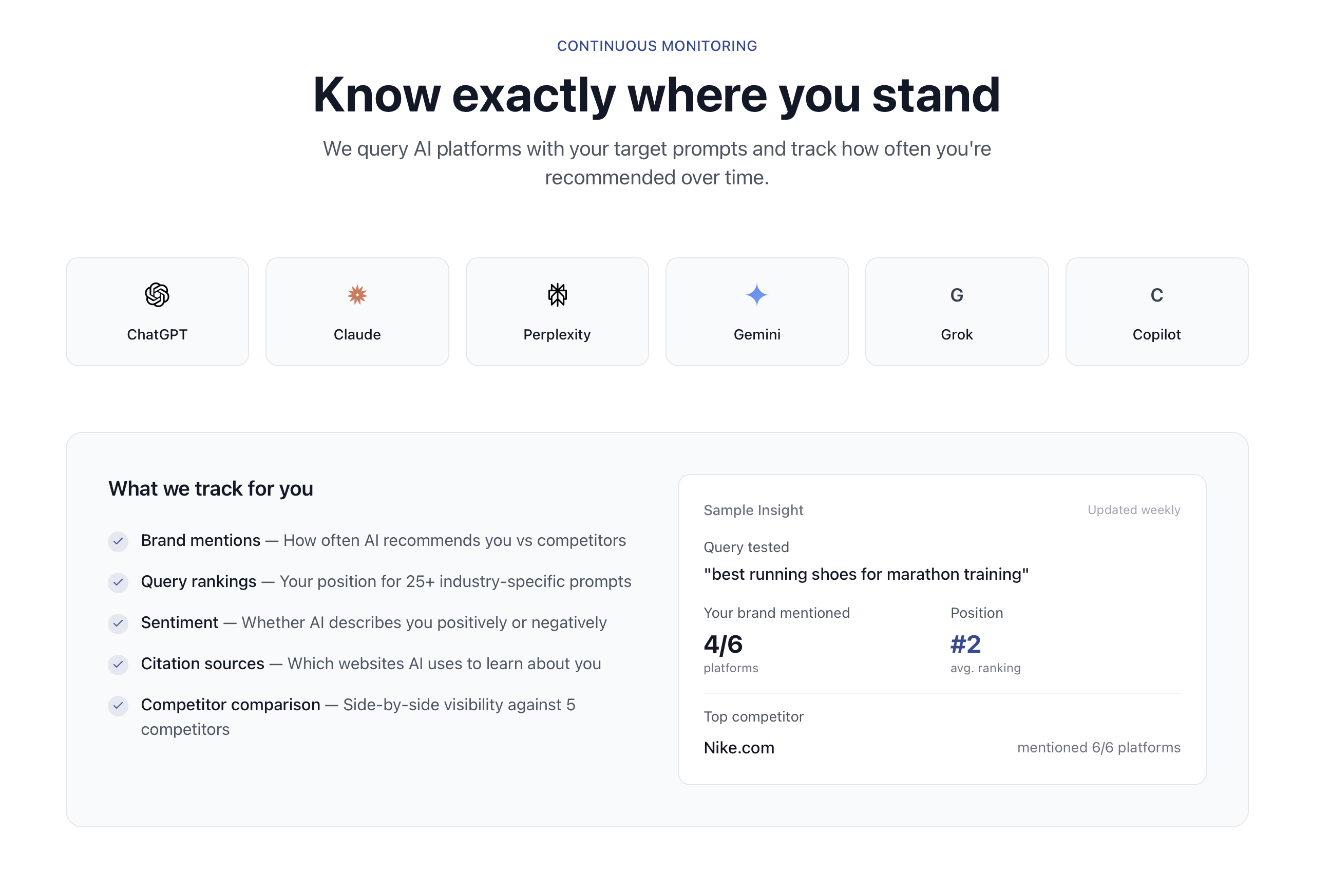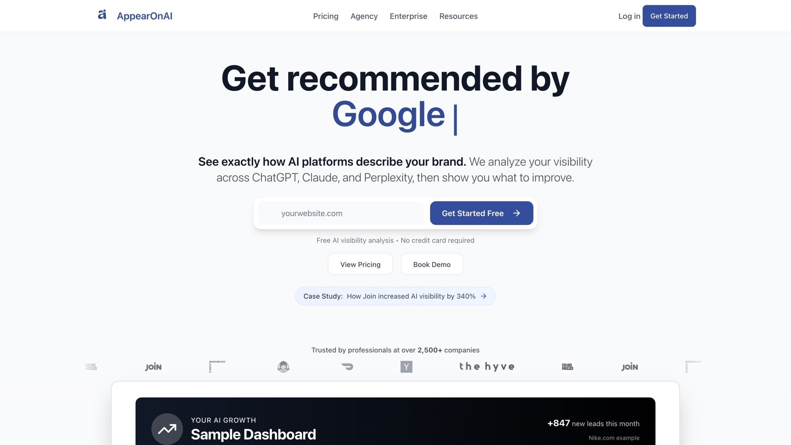 Appear 是一款全新的工具,旨在幫助您的品牌與產品獲得 ChatGPT、Gemini 及 Claude 等主流 AI 模型的推薦。