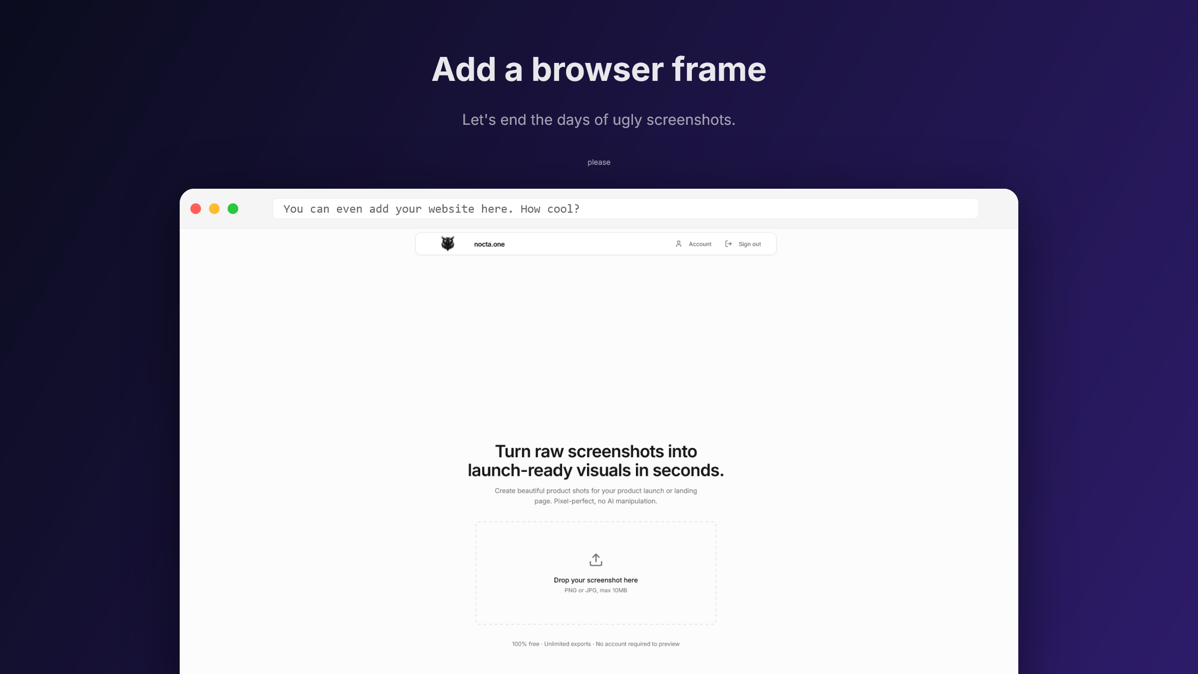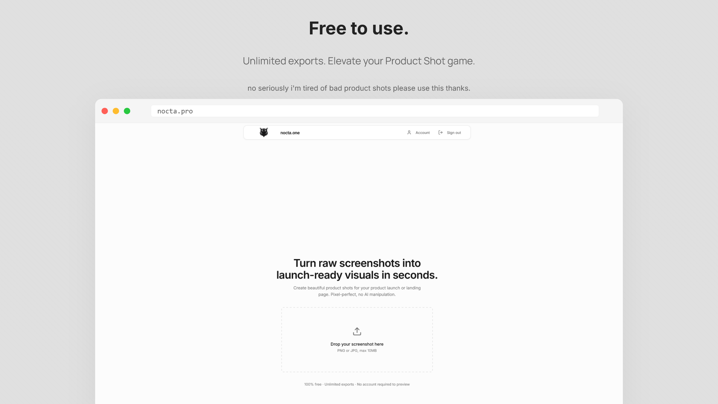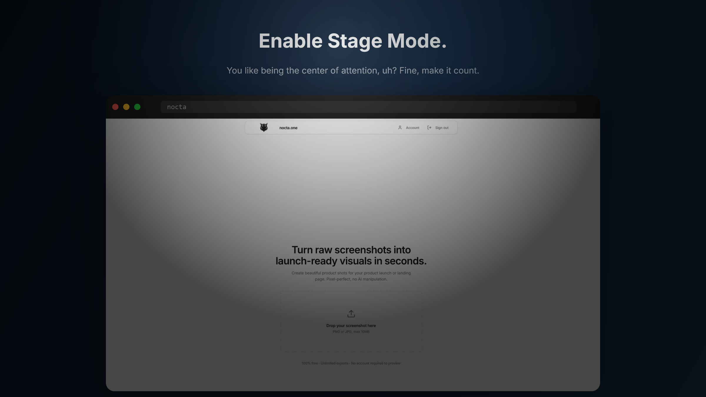 Nocta Pro 是一款創意工具,能在幾秒鐘內將原始截圖轉化為可用於發佈的專業視覺素材。