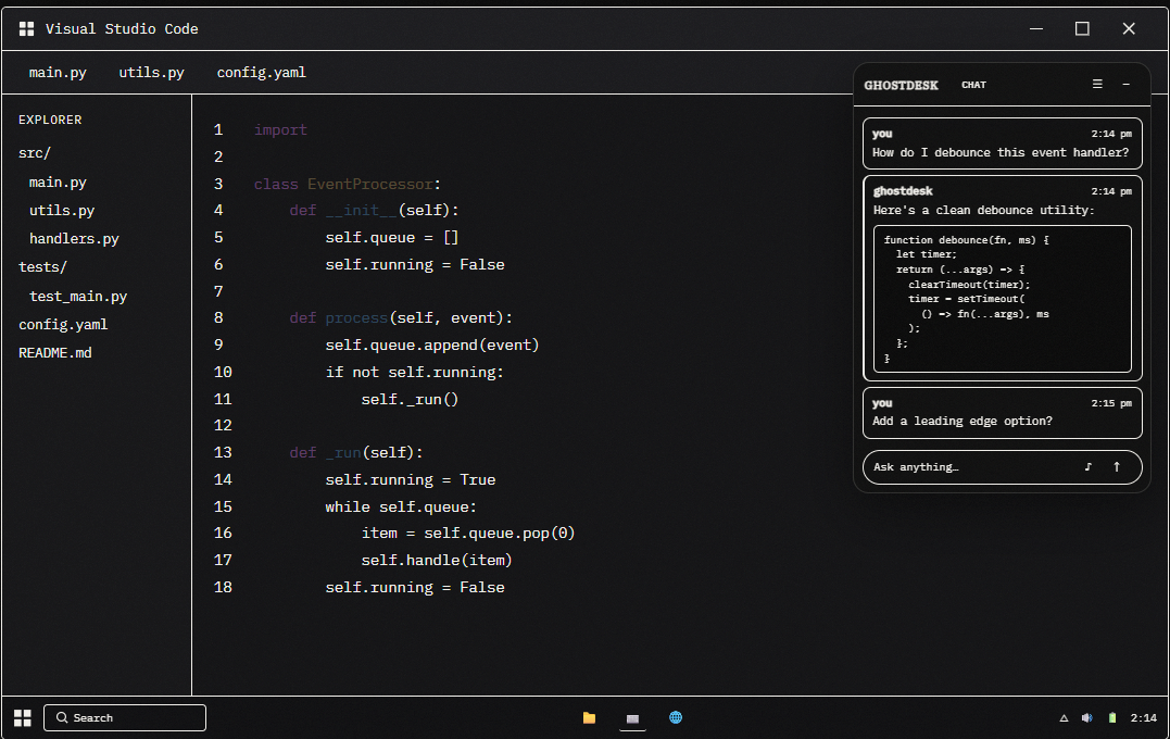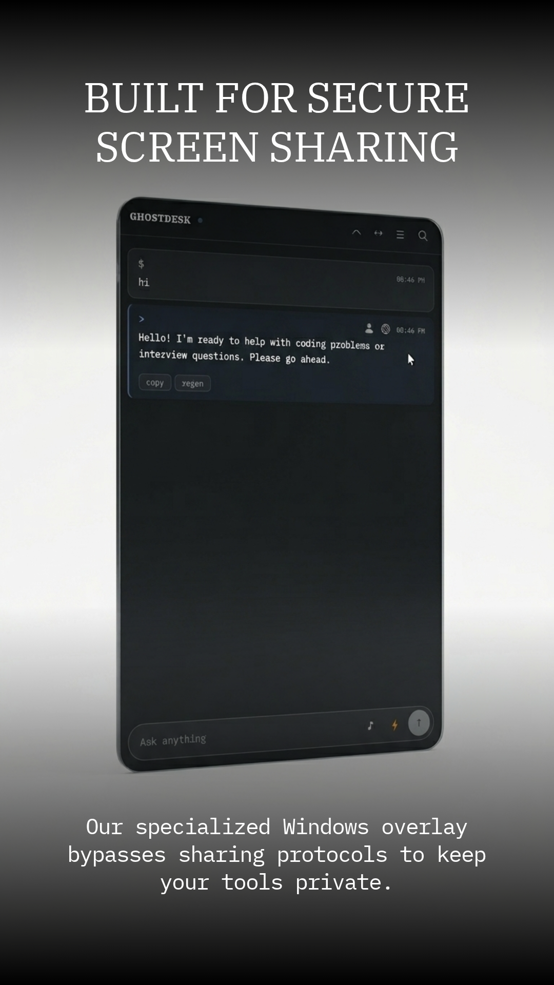GhostDesk 是一款隱形的 AI 副駕駛,專為面試和會議設計,能在過程中為您提供即時的支援與引導。