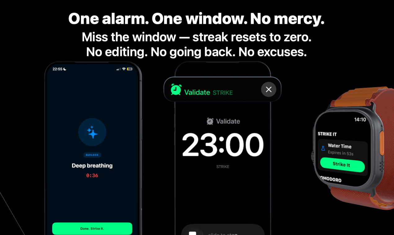 STRIKE 是一款在 Product Hunt 上推出的習慣養成應用程式,其核心設計理念是絕不寬容,旨在透過嚴格的機制幫助使用者保持自律。