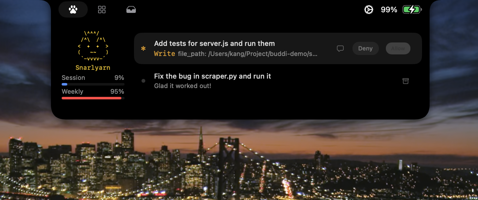Buddi:常駐於螢幕瀏海區域的 Claude Code 助手